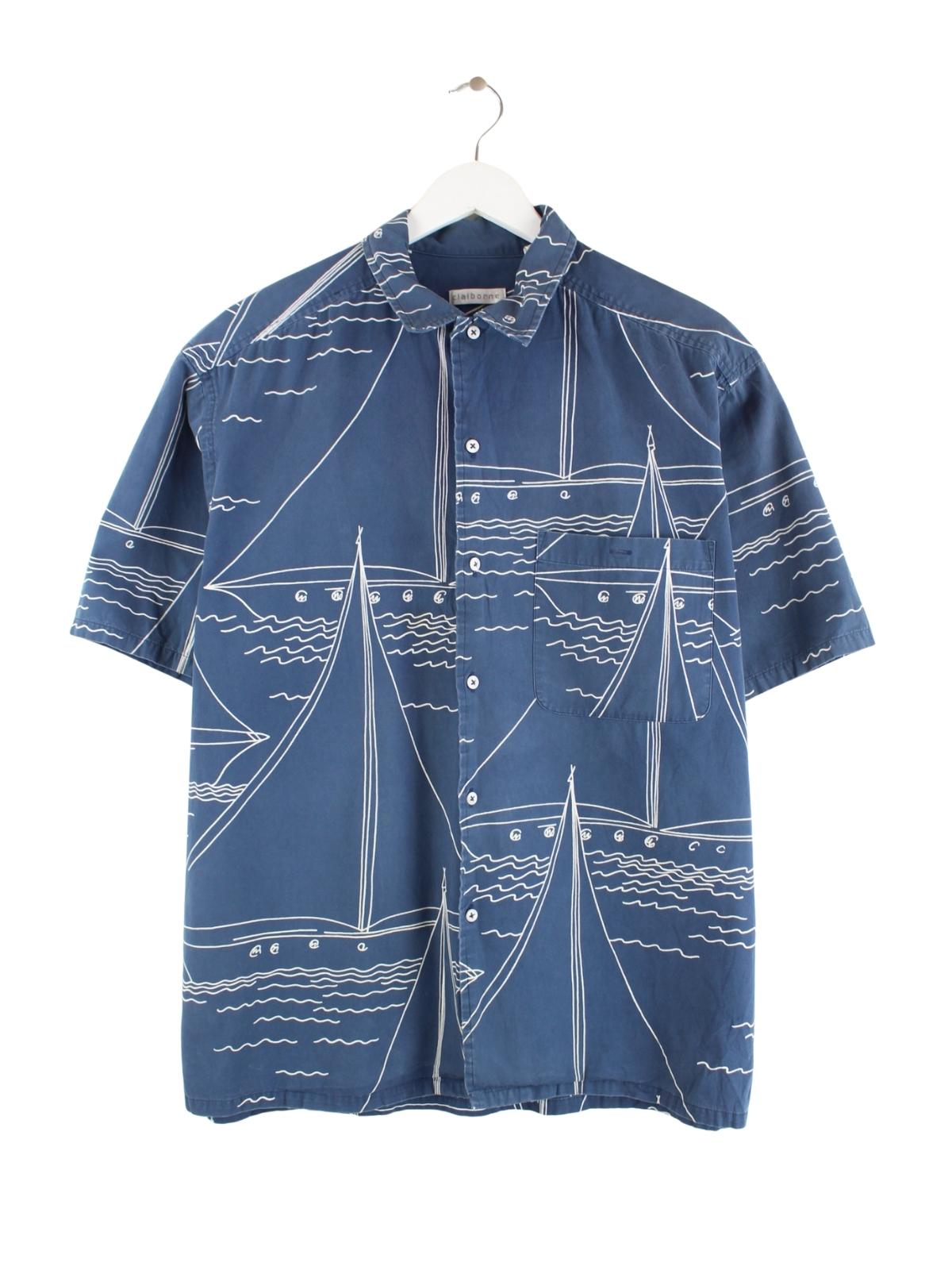 Vintage Freizeit Hemd in Größe L. Es ist aus Baumwolle und in Blau lieferbar.