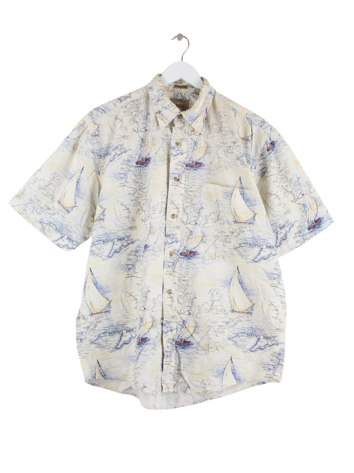 Vintage Freizeit Hemd in Größe M. Es ist aus Baumwolle gemacht und in Weiß im Bestand.