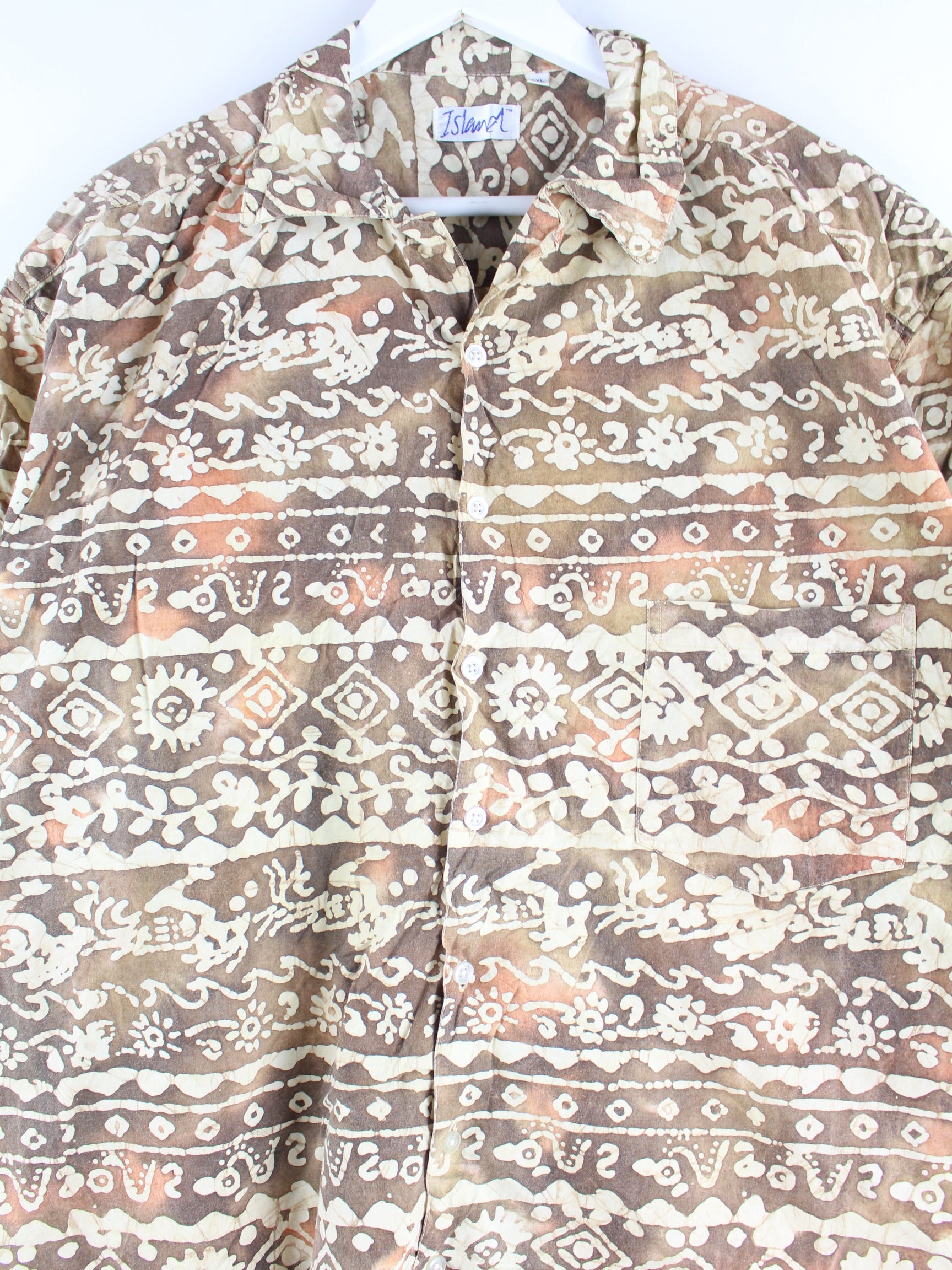 Vintage Hawaii Pattern Kurzarm Hemd Braun XXL