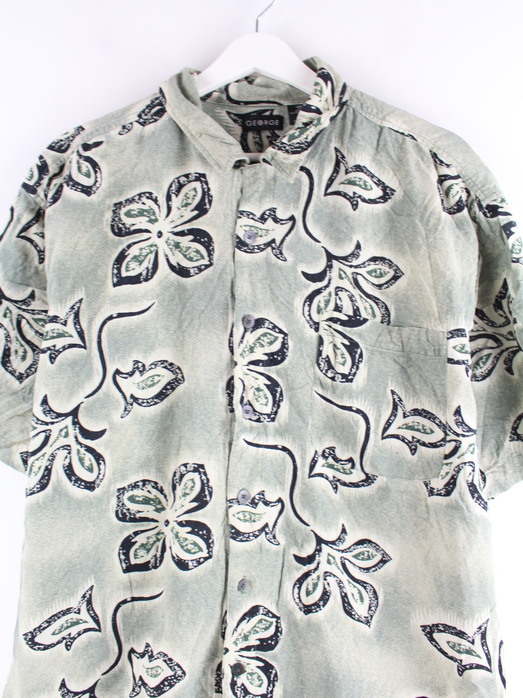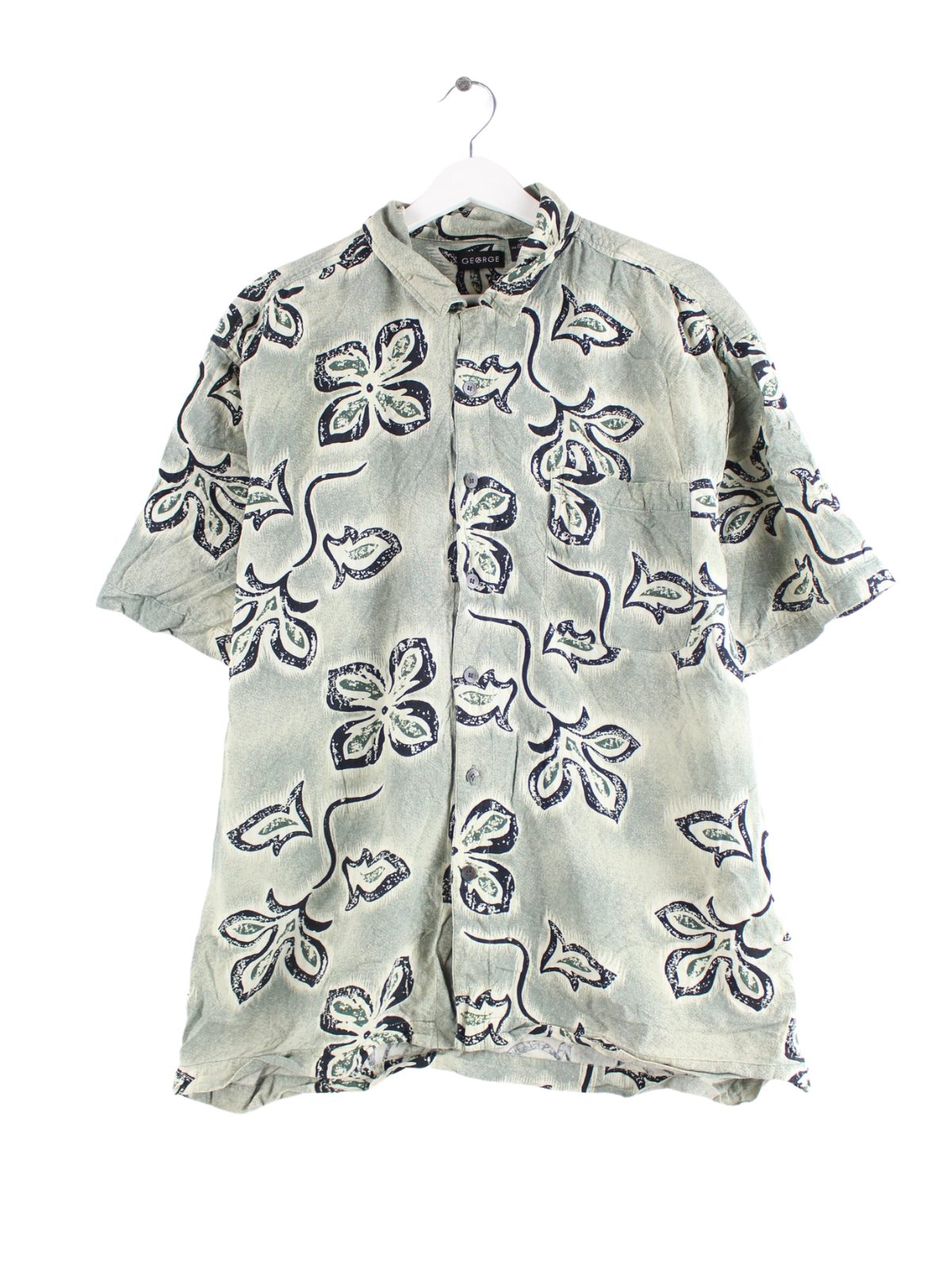 Vintage Hawaii Pattern Kurzarm Hemd Grün L