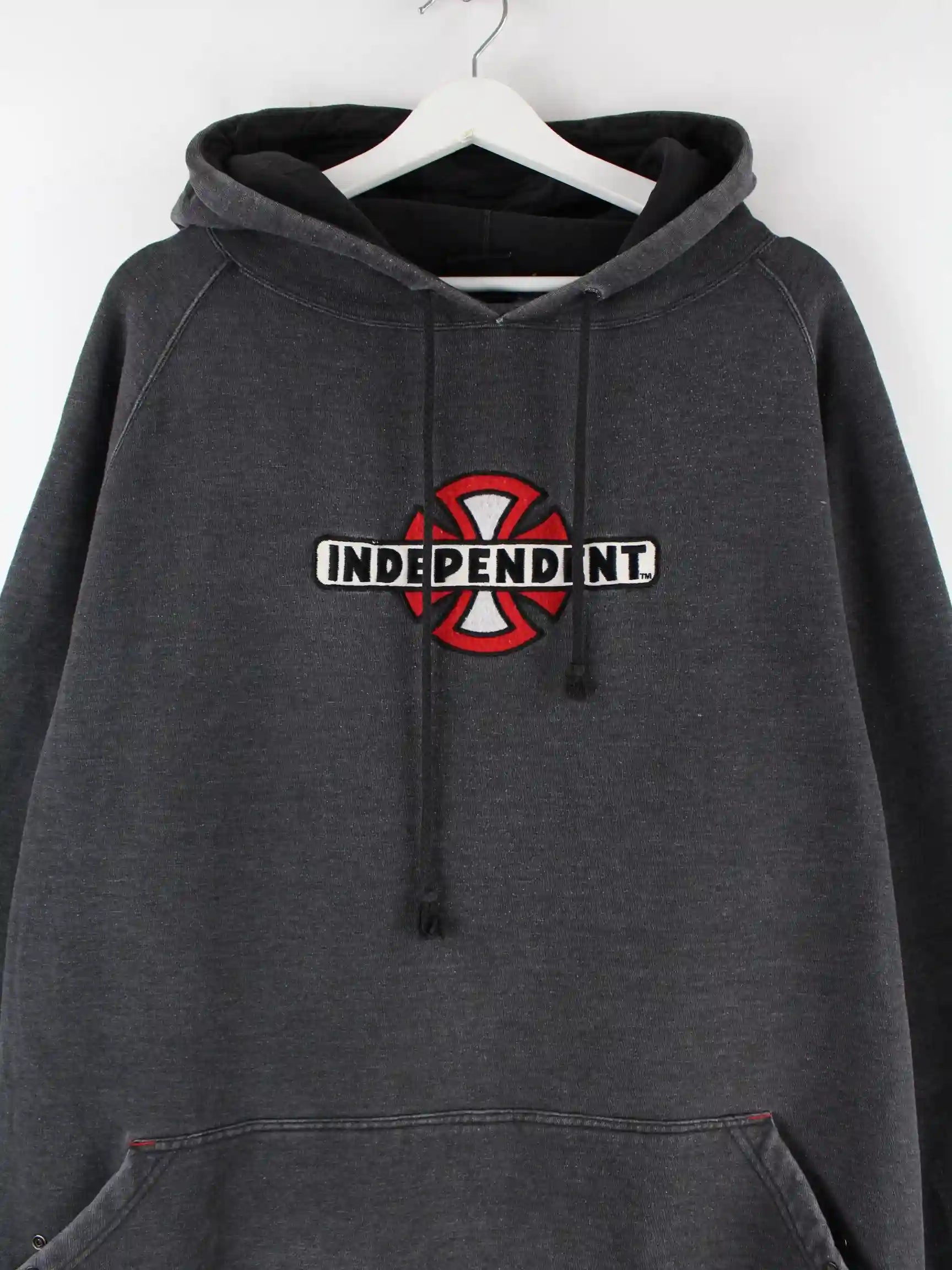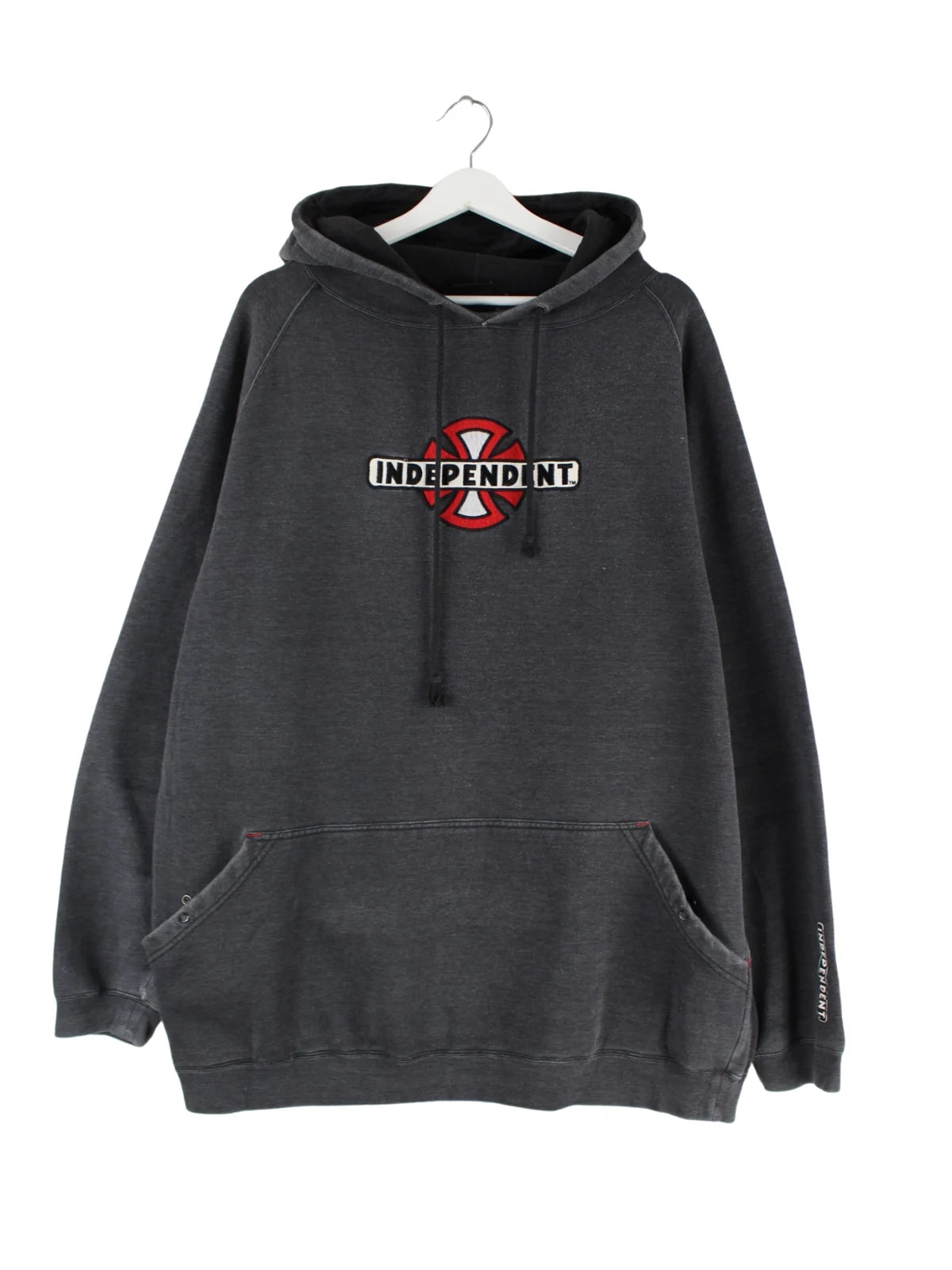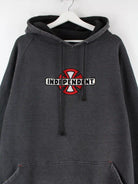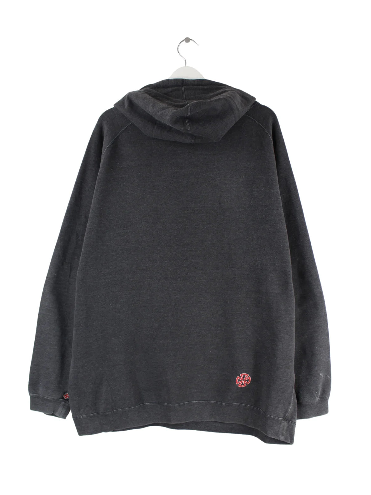 Vintage Hoodie mit gestickten Motiven in Größe 3XL. Er ist aus einer Baumwollmischung angefertigt und in Grau zu haben.