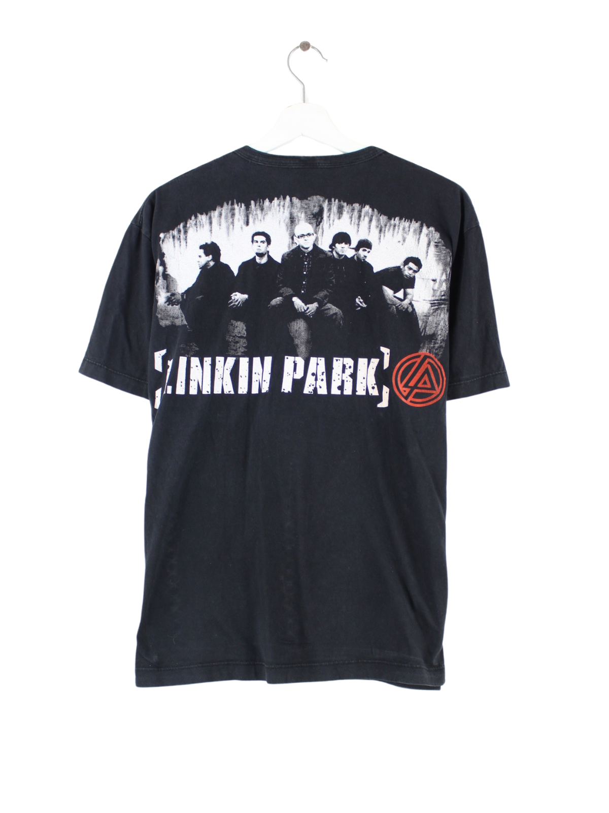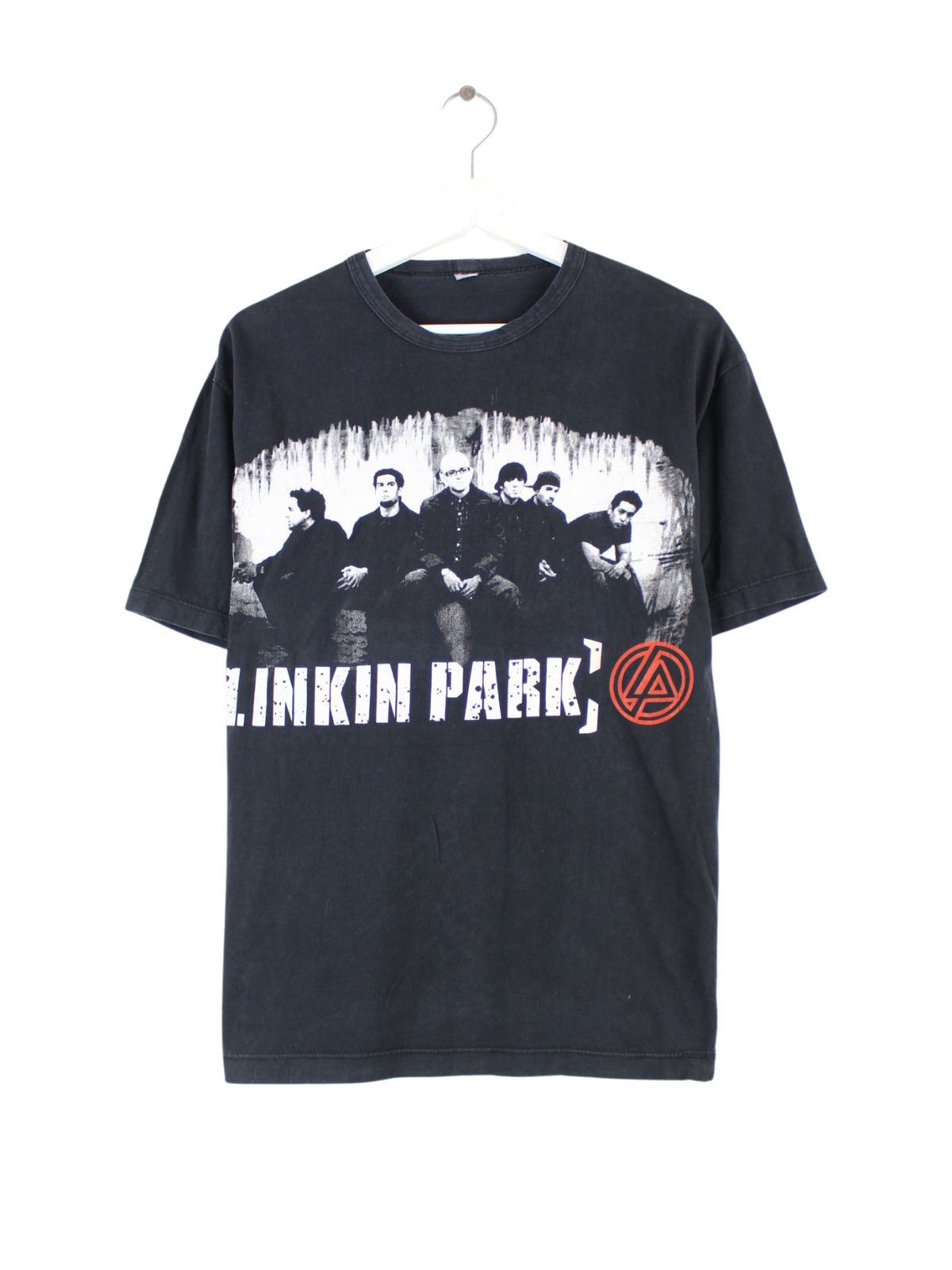 Schwarzes Vintage T-Shirt in Größe M. Es ist aus Baumwolle produziert und in gutem Zustand bei uns vorrätig.