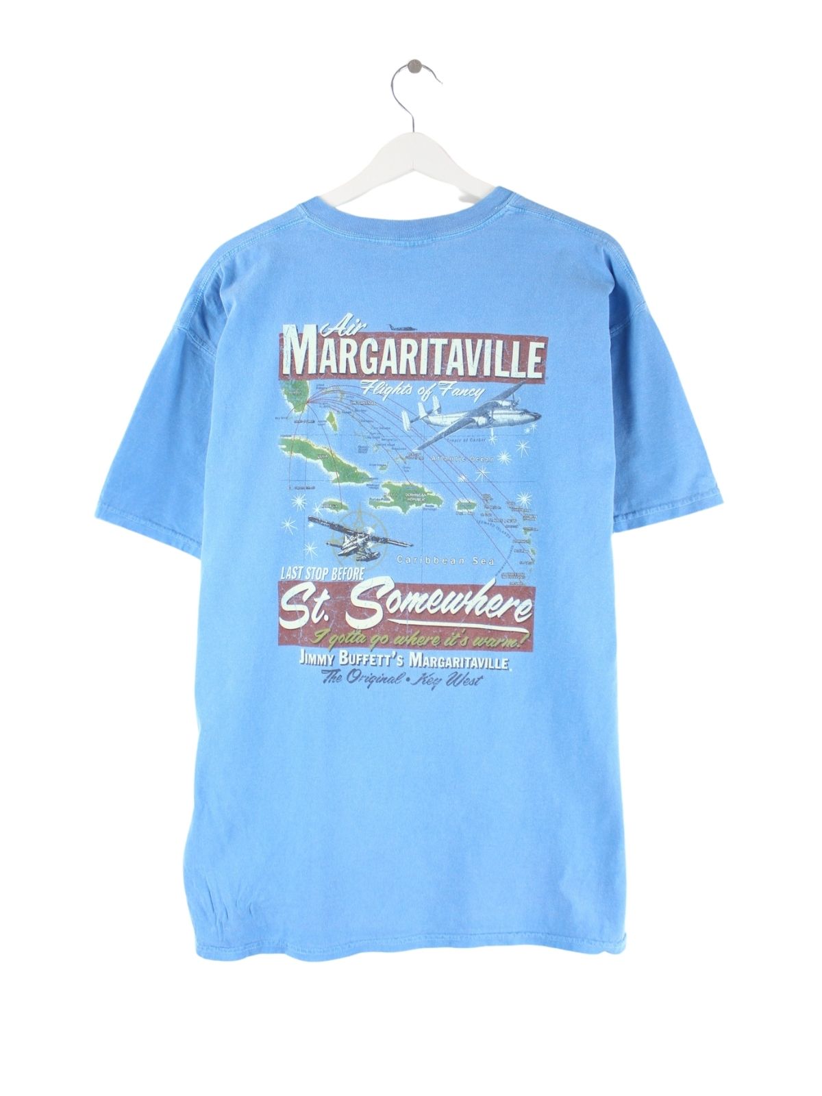 Blaues Vintage T-Shirt in Größe L. Es ist aus Baumwolle produziert und in sehr gutem Zustand im Bestand. Mit chiquem Margaritaville Print.