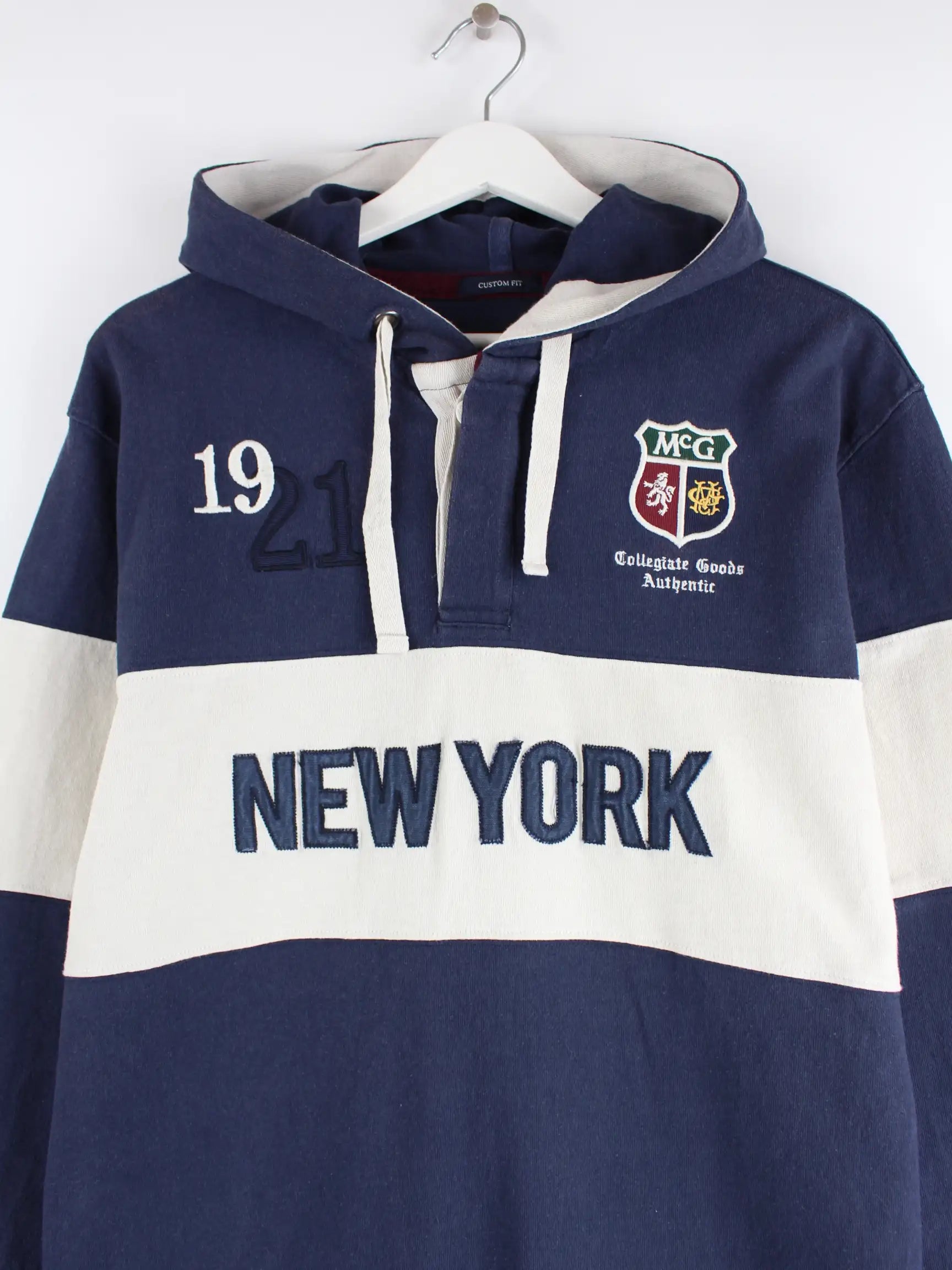 Vintage Hoodie in Größe XL. Er ist aus einer Baumwollmischung angefertigt und in Blau zu bekommen.