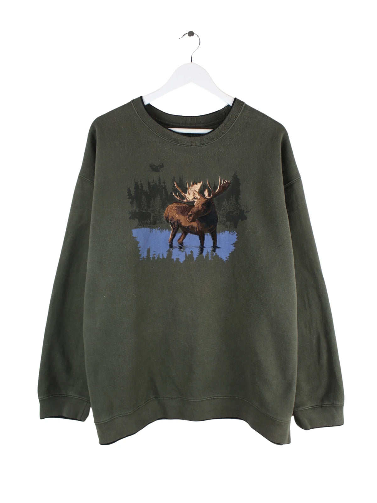 Vintage Outdoor Elk Embroidered Sweater Grün XXL