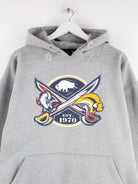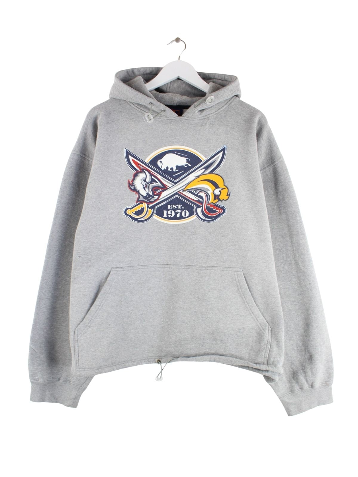 Vintage Hoodie in Größe XXL. Er ist aus einer Baumwollmischung produziert und in Grau auf Lager. Mit tollem Print.