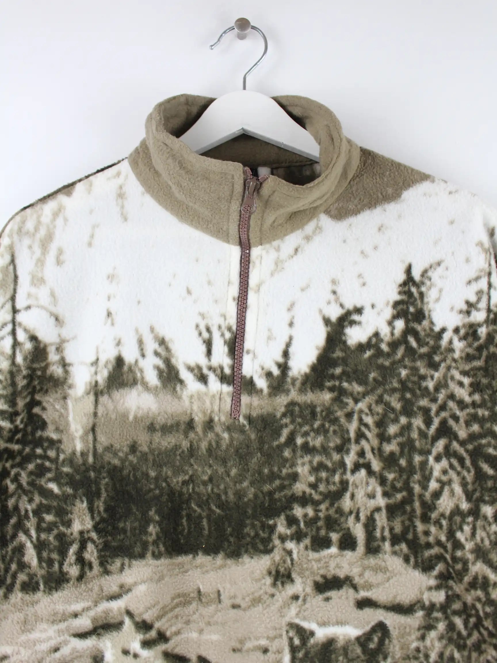 Vintage Wolf Pattern Half Zip Fleece Jacke Braun M