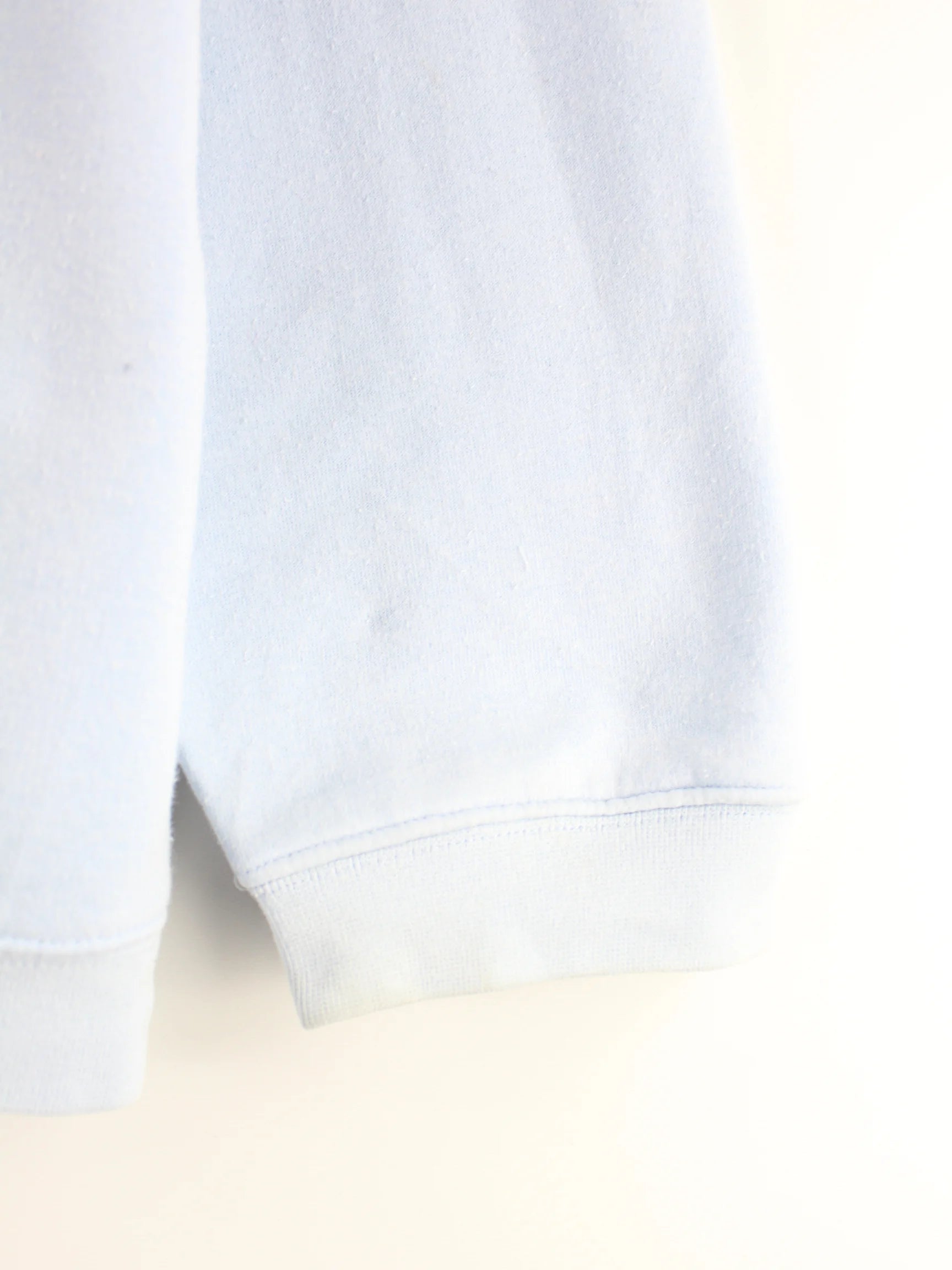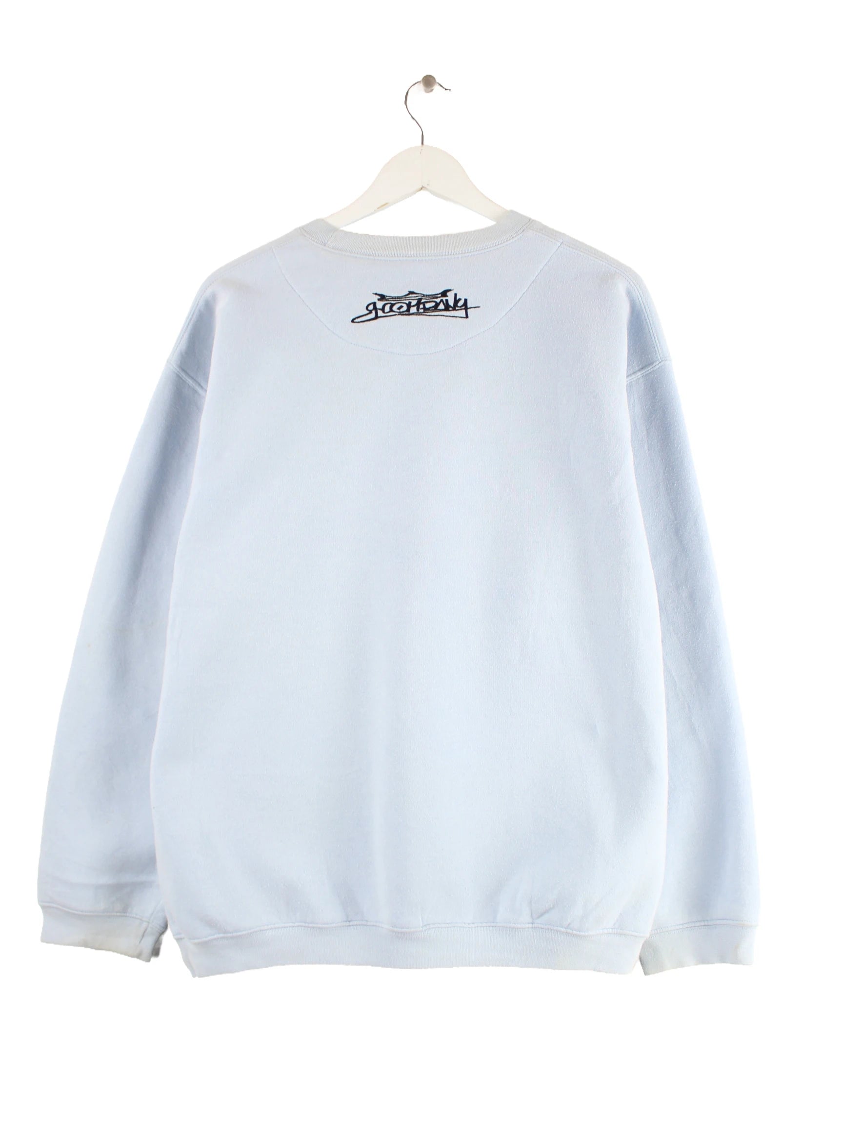 Vintage Sweater in Größe L aus Anfang der 2000'er. Er ist aus einer Baumwollmischung gemacht und in Blau zu bekommen.