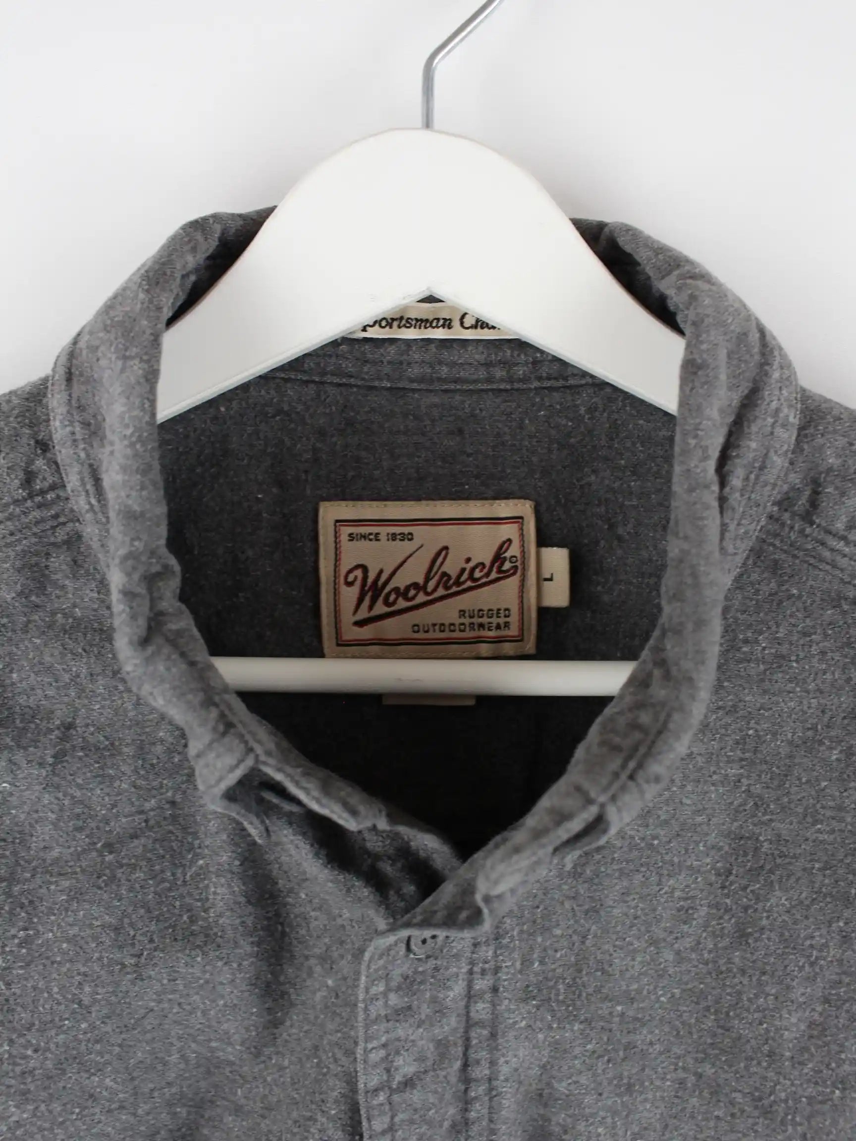 Graues Freizeit Hemd der Brand Woolrich aus den 90'ern in Größe L. Es ist aus Baumwolle und in sehr gutem Zustand vorrätig.