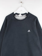 Sweater der Marke Adidas in Größe XL. Er ist aus einer Baumwollmischung gemacht und in Schwarz im Bestand.