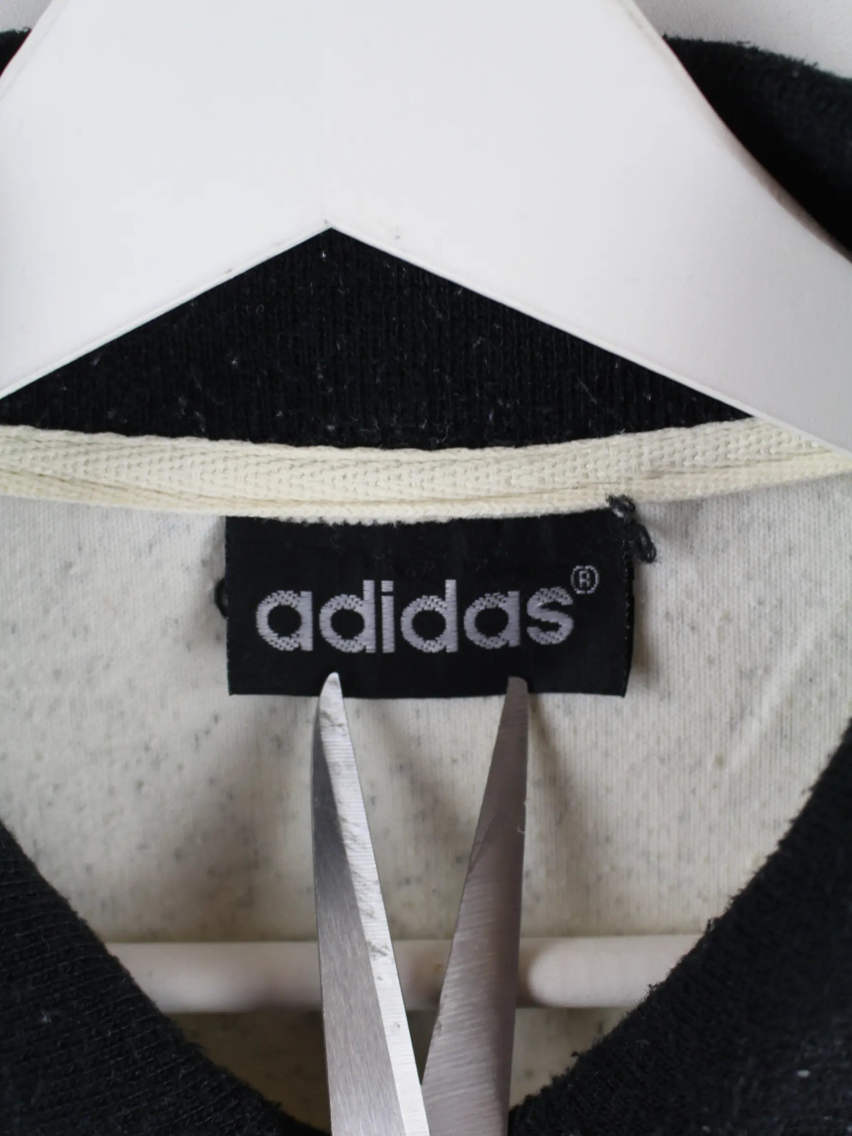 Graues Poloshirt mit Stickereien aus dem Hause Adidas aus den 80'ern in Größe XXL. Es ist aus Baumwolle angefertigt und in sehr gutem Zustand zu haben.