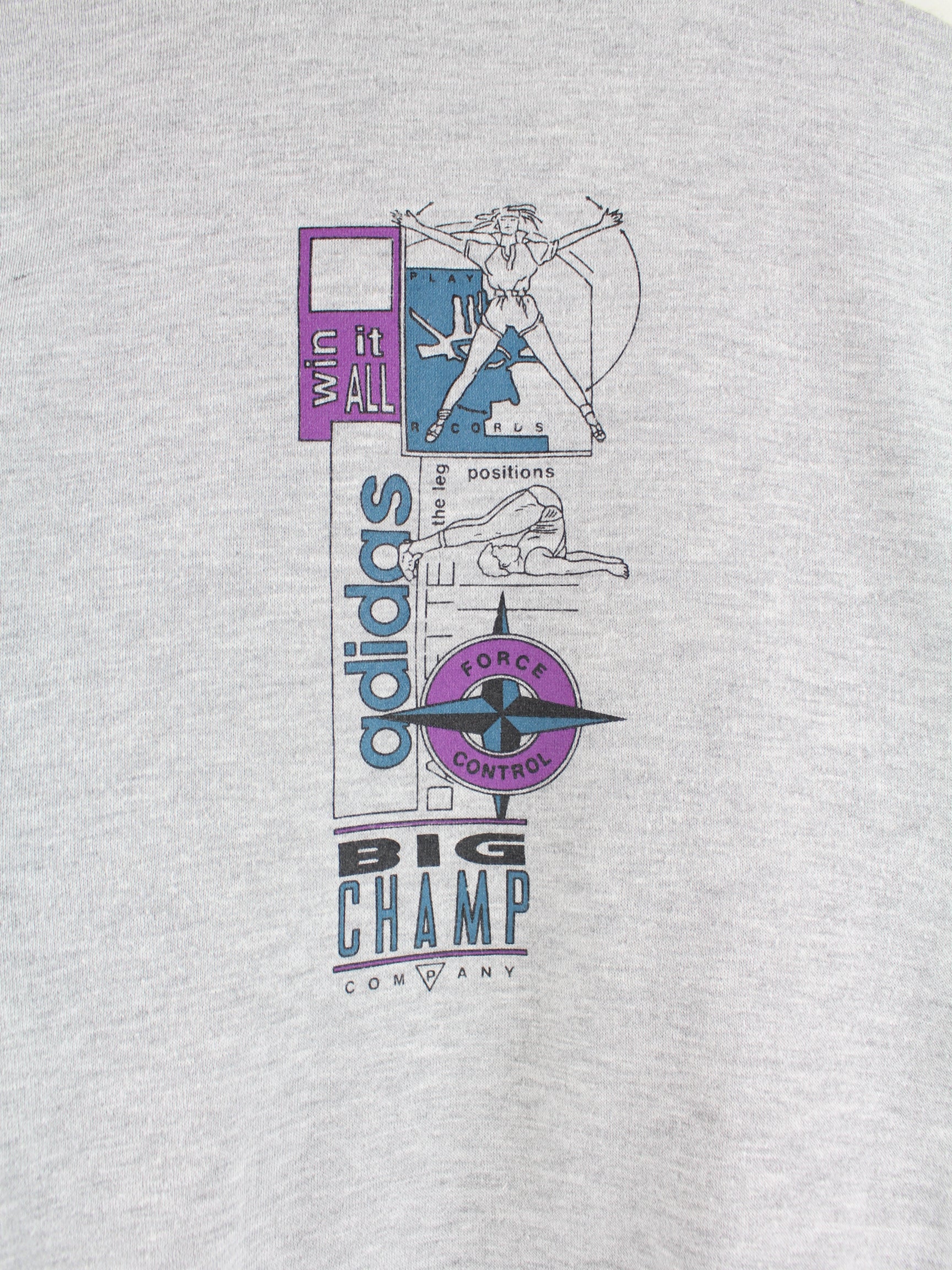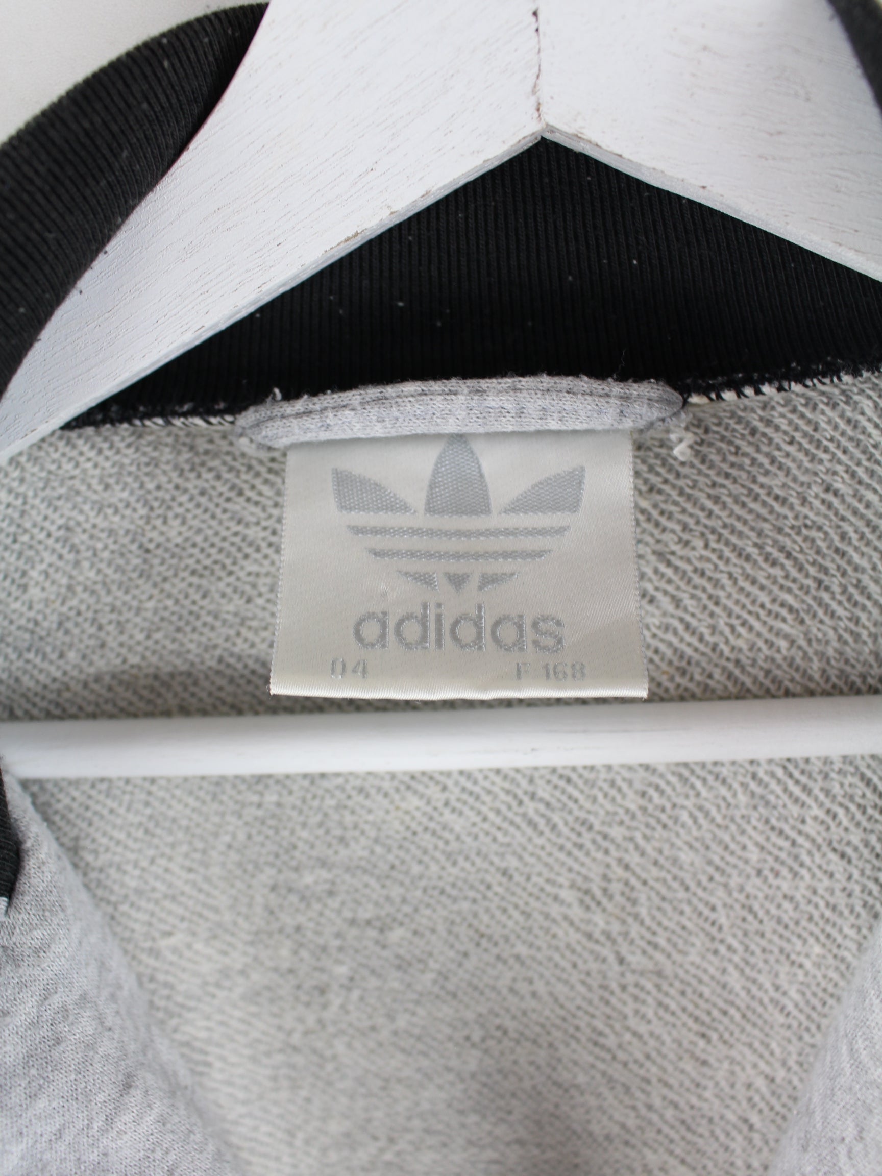 Sweatjacke aus dem Hause Adidas in Größe S aus den 80'ern. Sie ist aus einer Baumwollmischung und in Grau zu haben. Mit schönem Control Print.