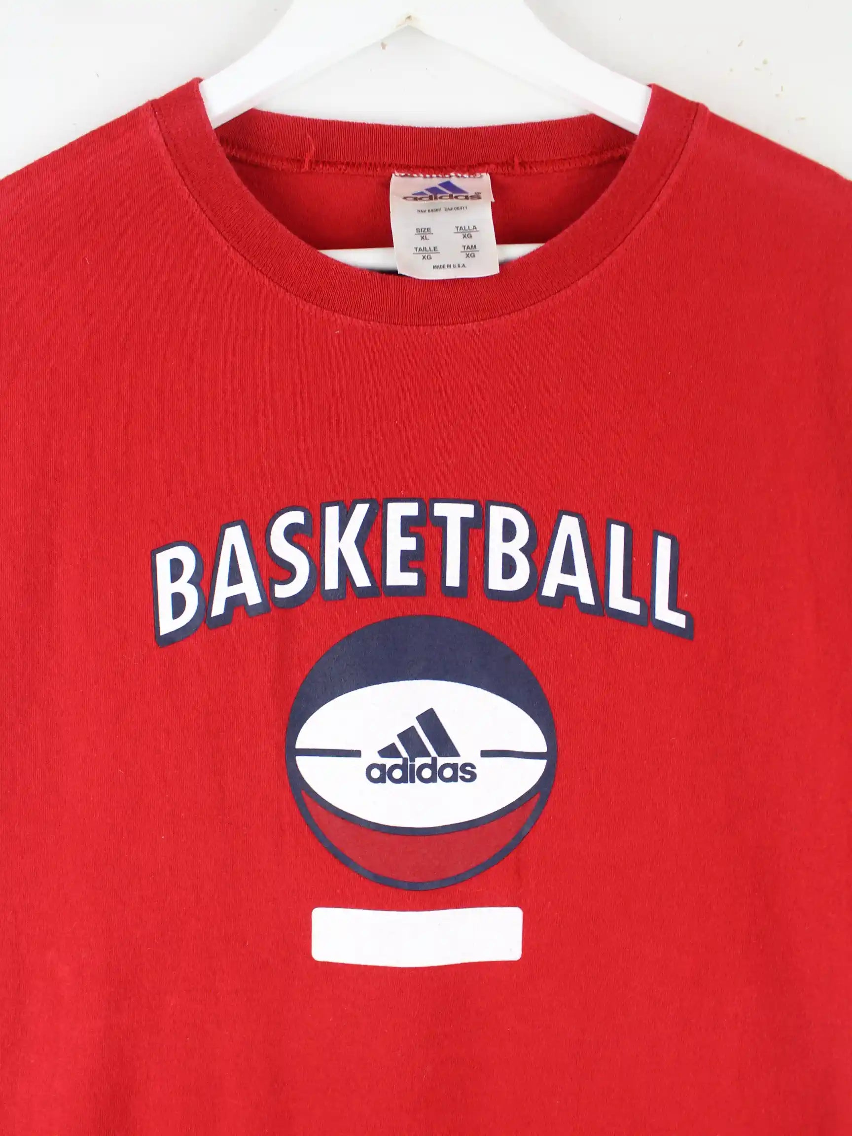 Roter Tank Top vom Label Adidas aus den 90'ern in Größe XL. Er ist aus Baumwolle gemacht und in sehr gutem Zustand im Angebot. Mit tollem Basketball Print.