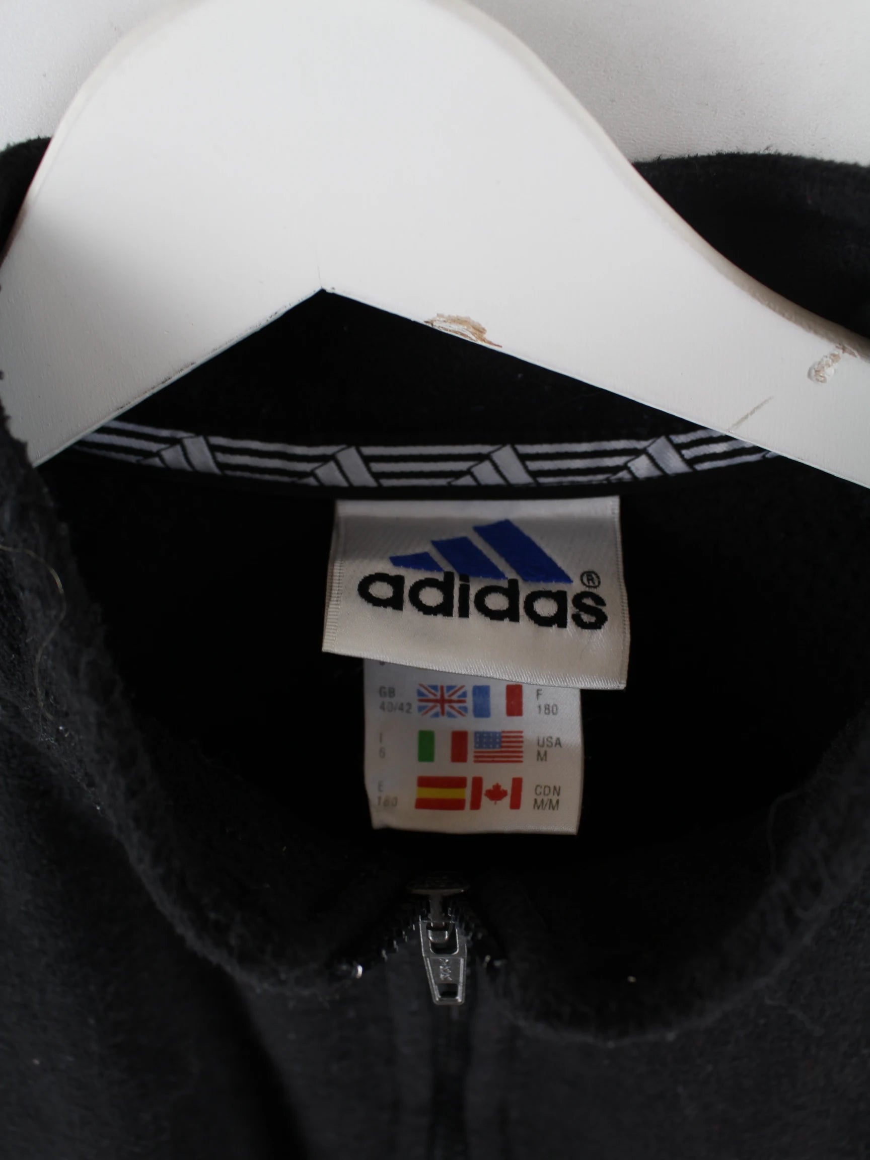 Sweater der Marke Adidas mit kurzem Reißverschluß in Größe M aus den 90'ern. Er ist aus weichem Fleece gefertigt und in Schwarz im Angebot.