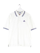 Poloshirt der Brand Adidas in Größe M aus den 90'ern. Es ist aus Baumwolle und in Weiß lieferbar.