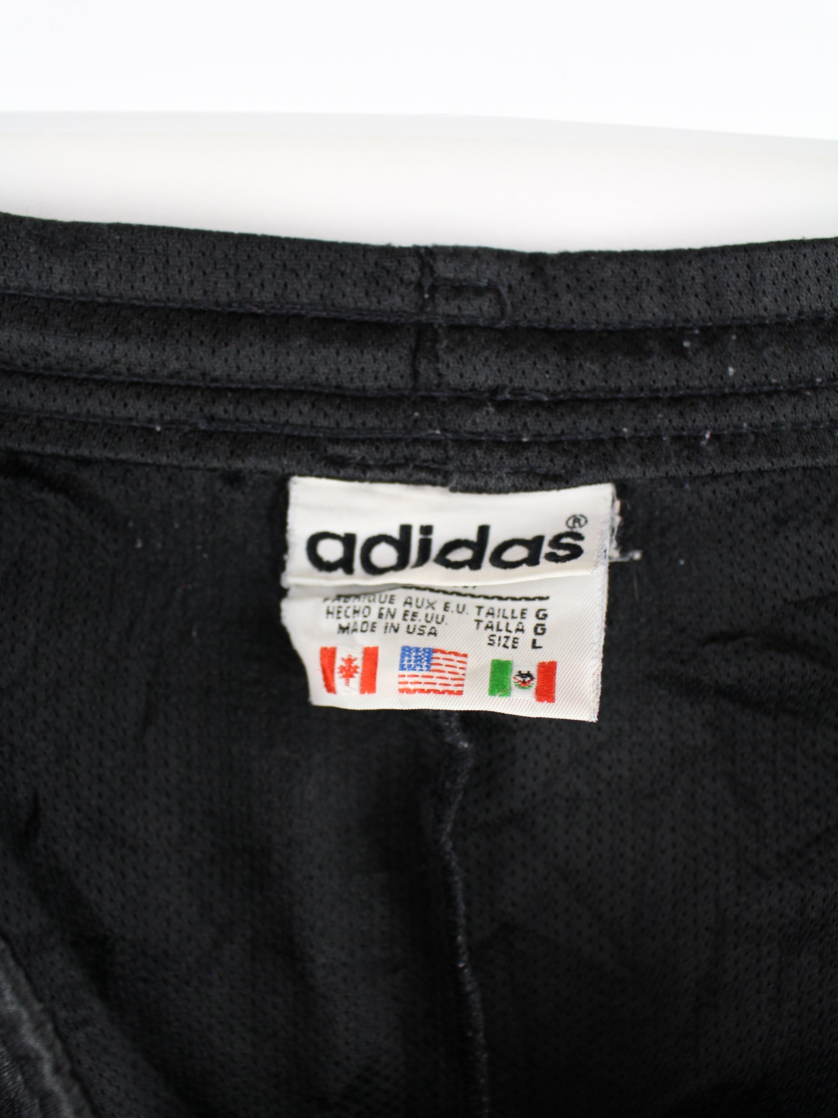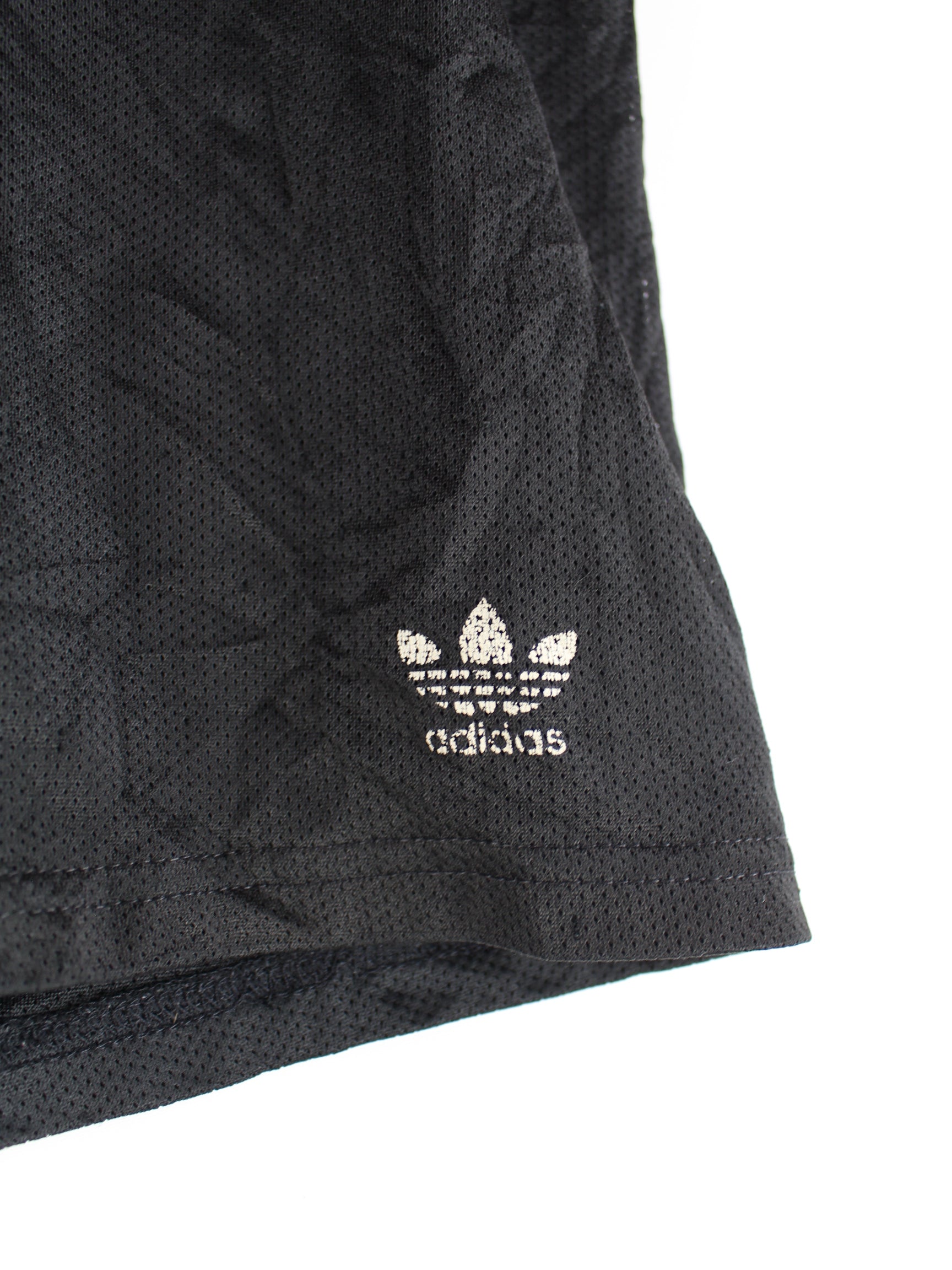 Schwarze Shorts der Marke Adidas aus den 90'ern in Größe L. Sie sind aus Synthetik produziert. Den Zustand würden wir als 'In Ordnung' bezeichnen (vergl. Bilder).