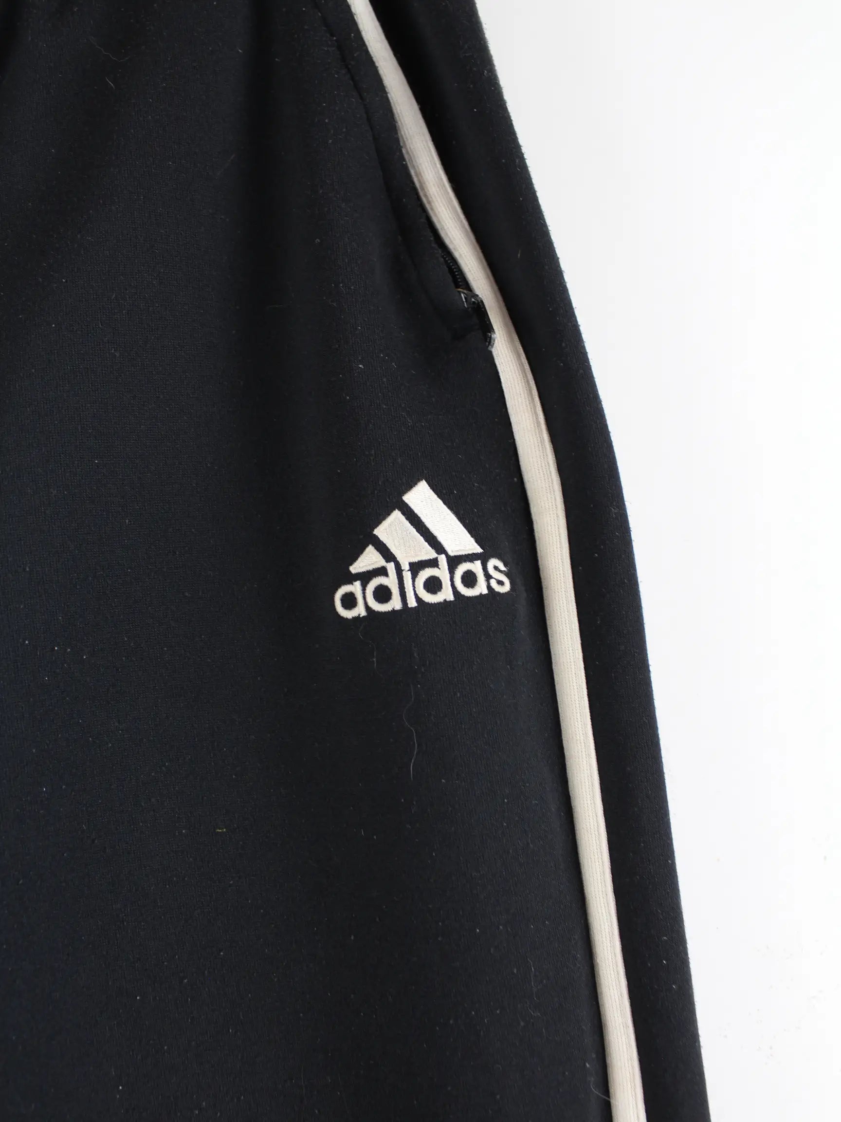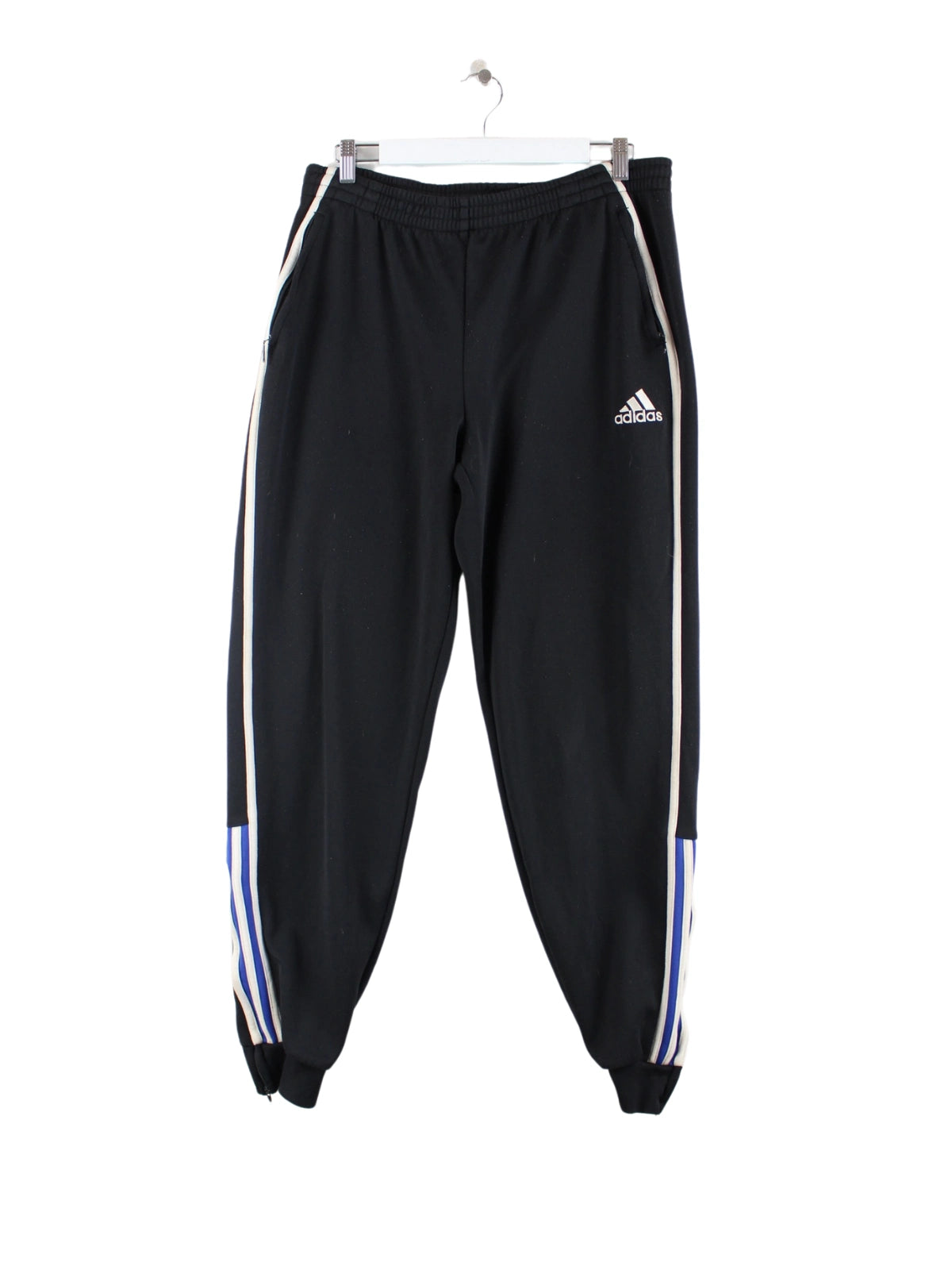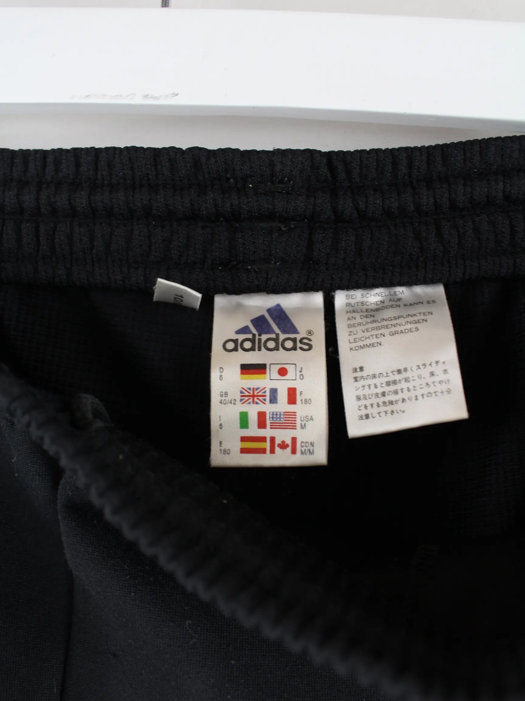 Schwarze Track Pants der Brand Adidas aus den 90'ern in Größe L. Sie sind aus Synthetik hergestellt und in sehr gutem Zustand lieferbar.
