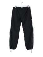 Schwarze Track Pants vom Brand Adidas in Größe M. Sie sind aus Synthetik produziert und in gutem Zustand bei uns zu bekommen.