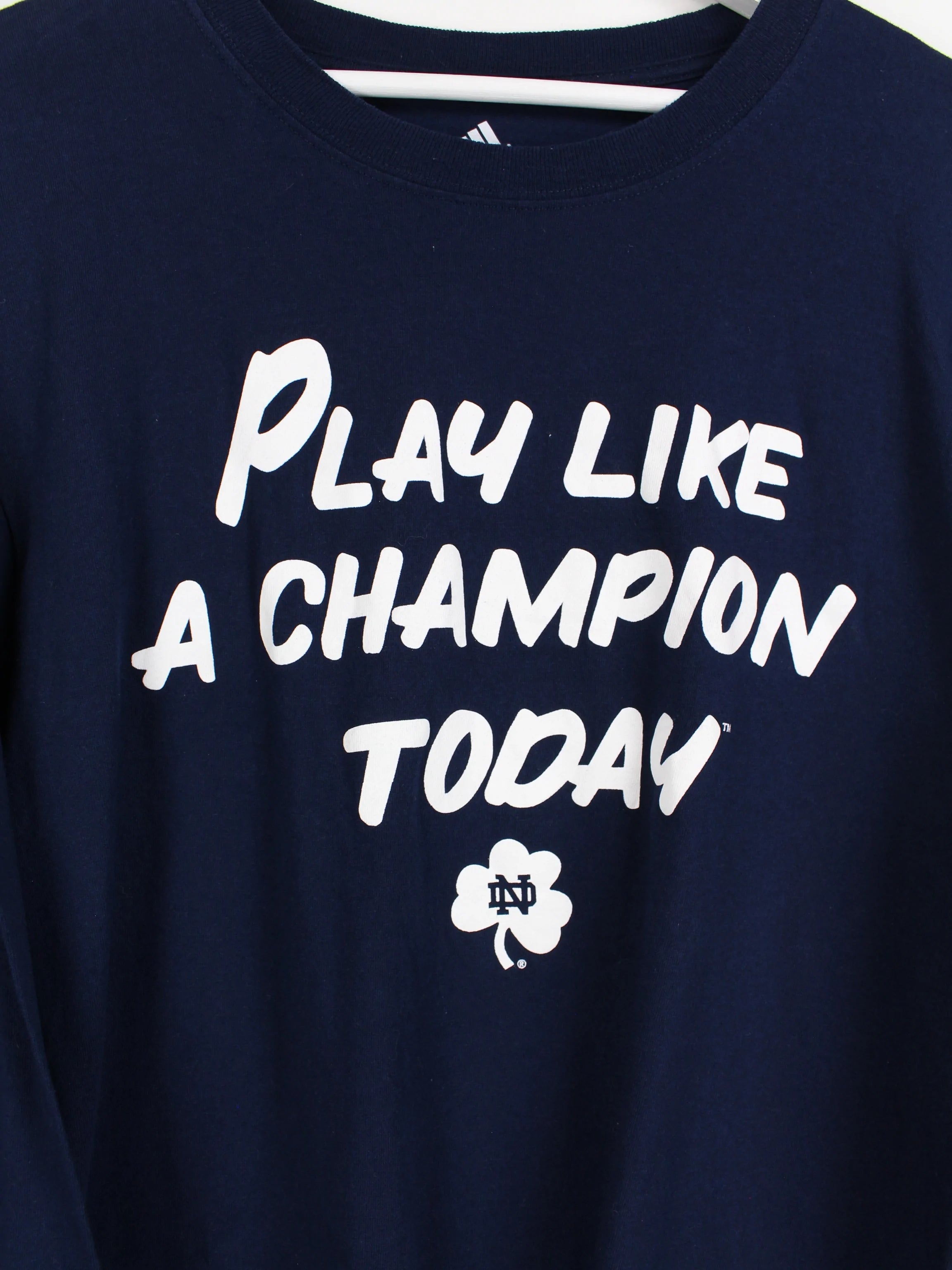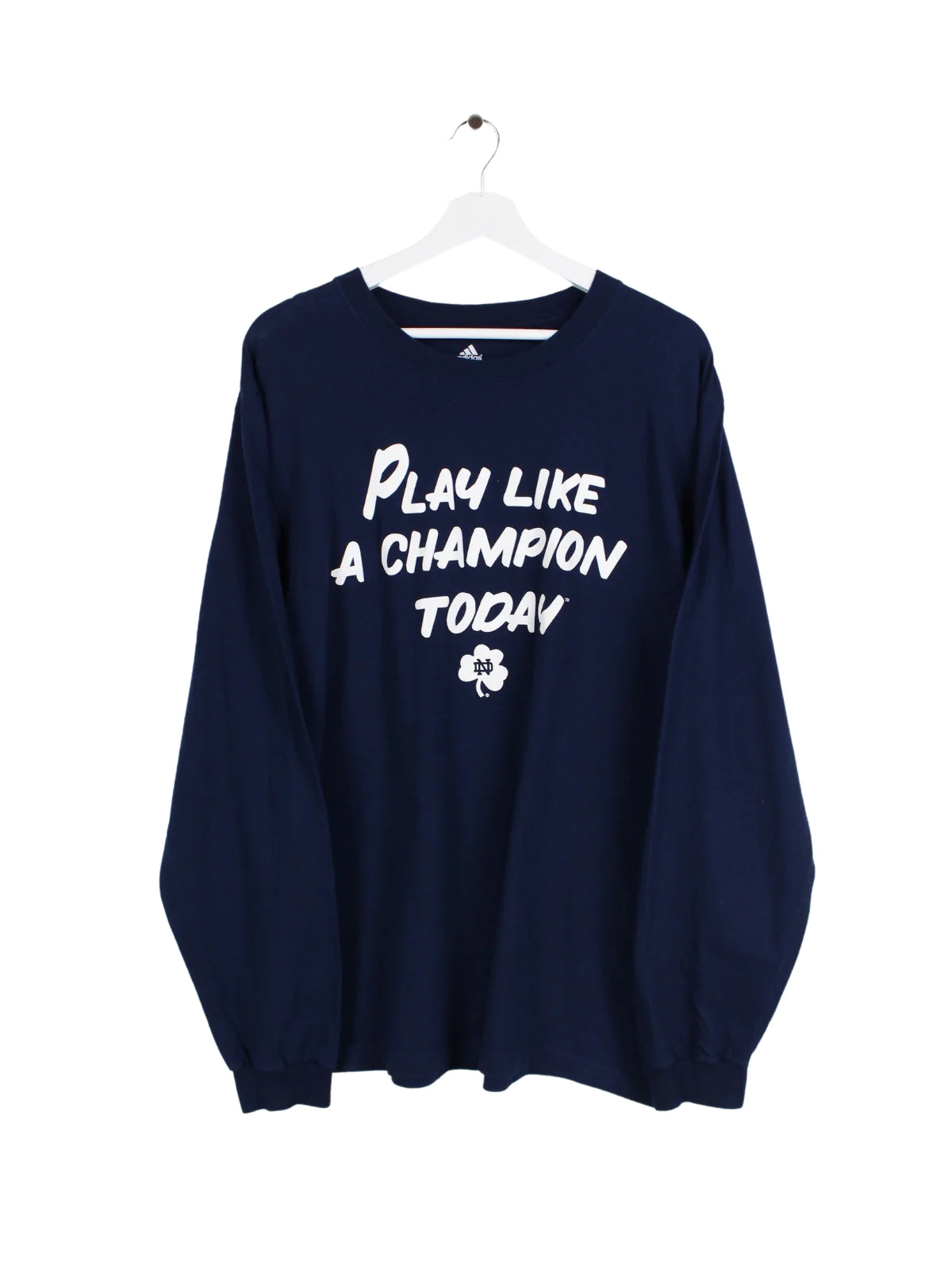 Blaues Adidas Longsleeve Shirt der Mannschaft Notre Dame.