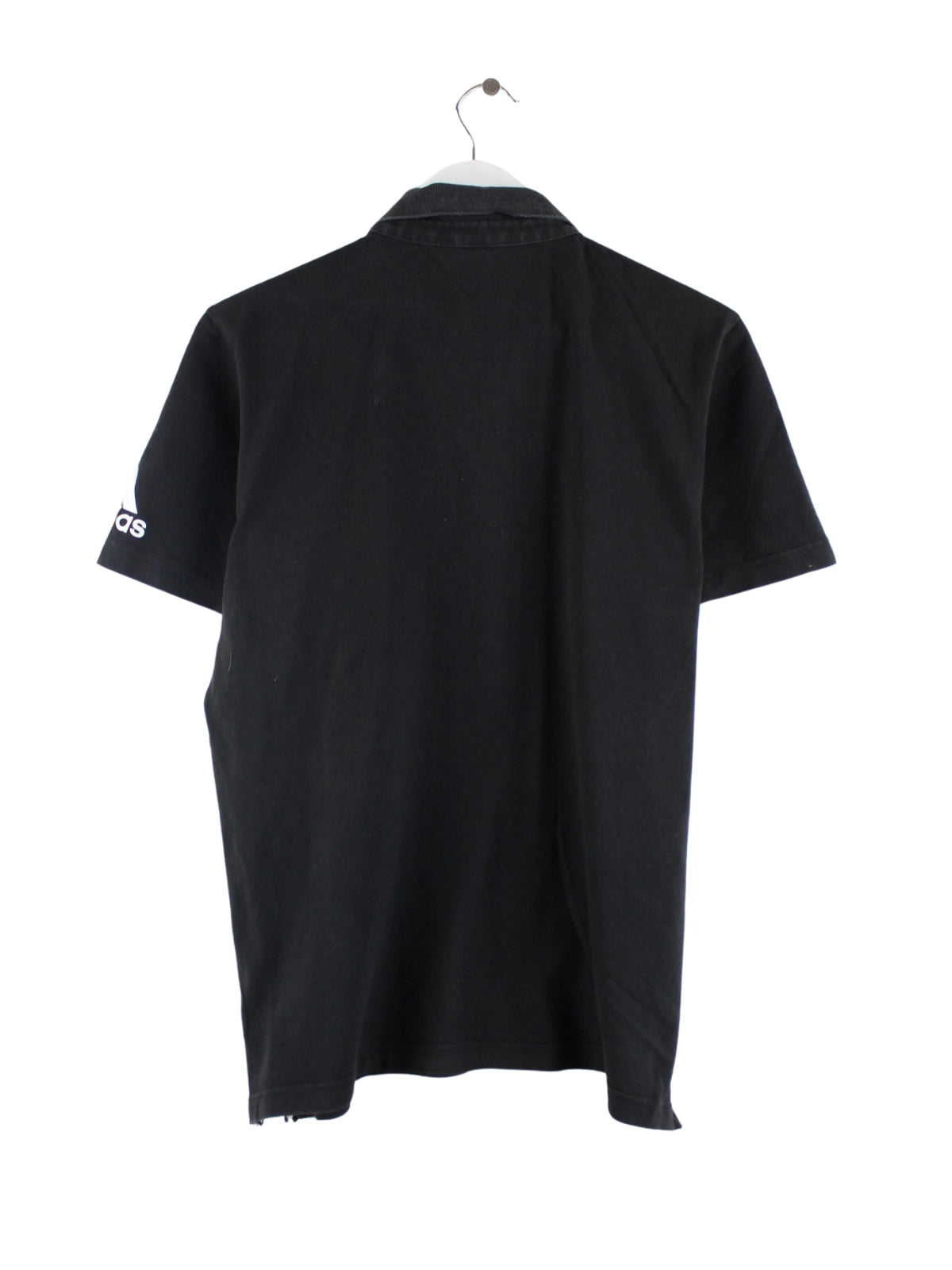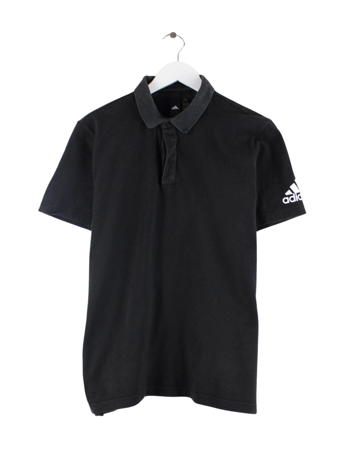 Schwarzes Poloshirt vom Brand Adidas in Größe M. Es ist aus Baumwolle hergestellt und in gutem Zustand lieferbar.