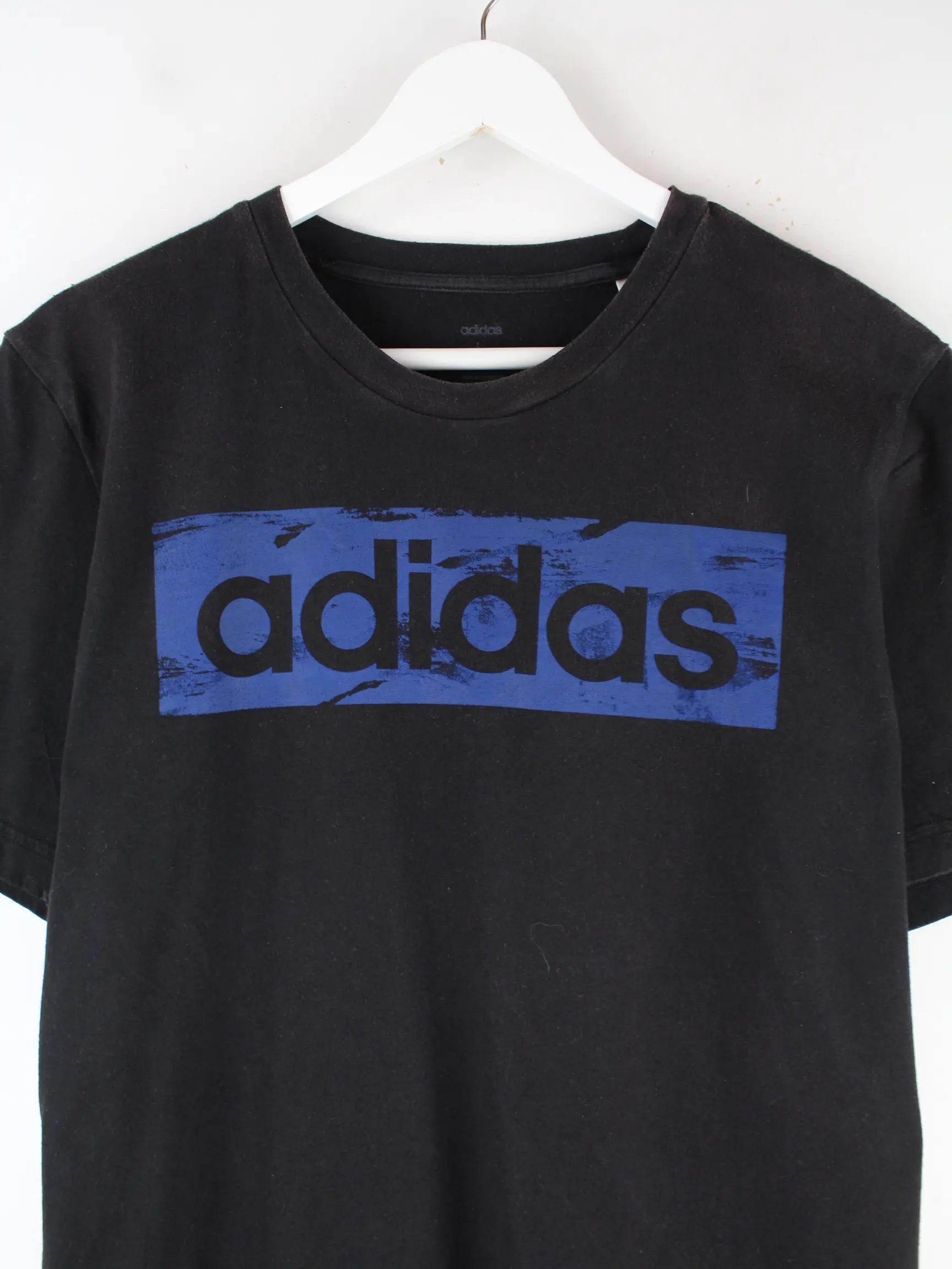 Schwarzes T-Shirt des Labels Adidas in Größe L. Es ist aus Baumwolle produziert und in sehr gutem Zustand im Angebot. Mit tollem Print.