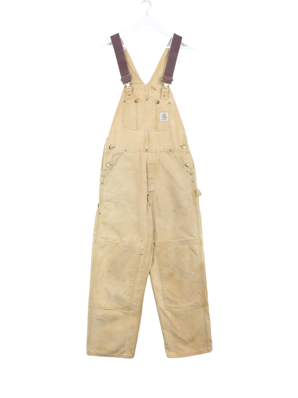 Beige Damen Vintage Carhartt Double Knee Carpenter Workwear Denim Latzhose.