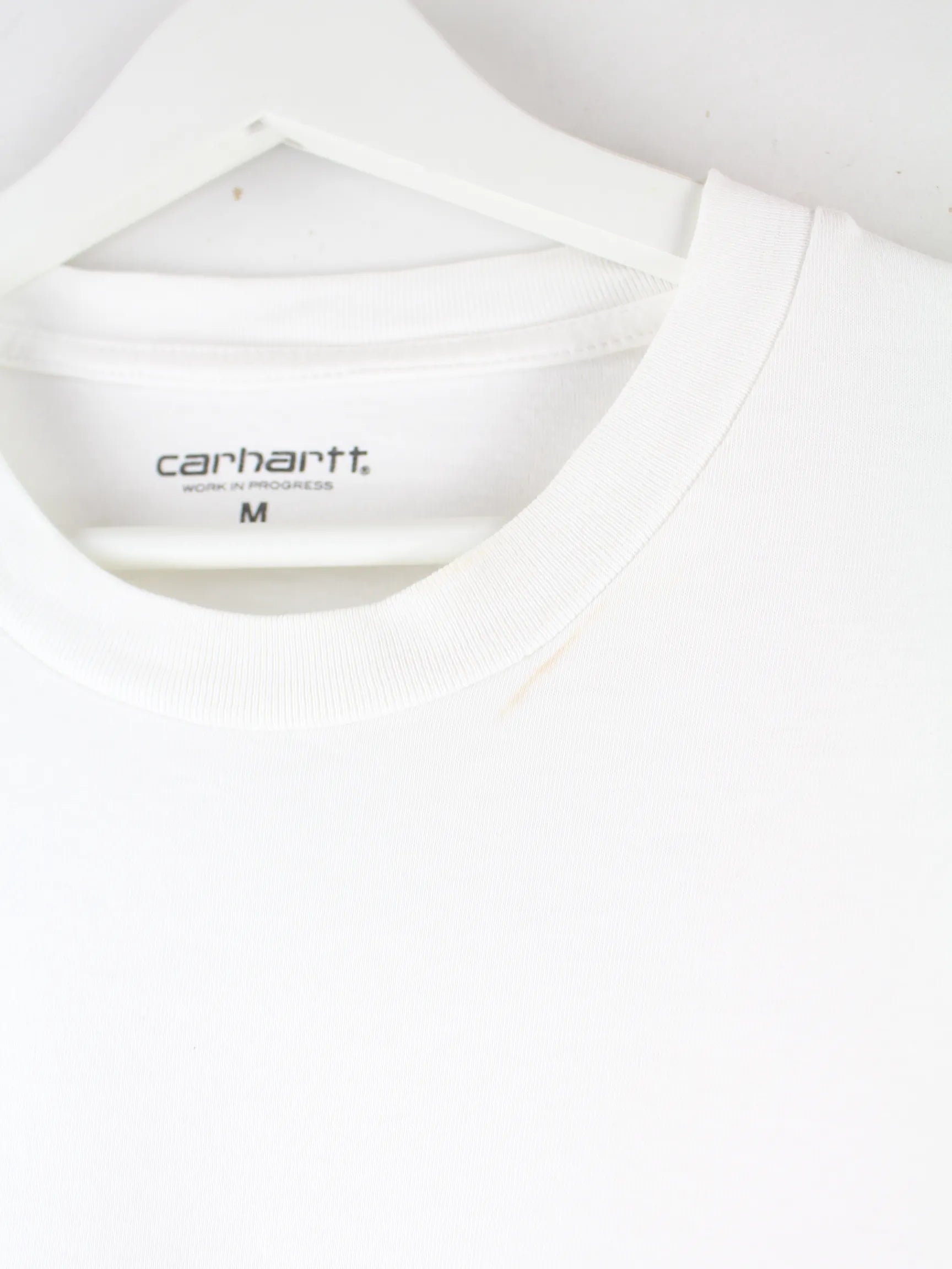Weißes Sweatshirt der Brand Carhartt in Größe M. Es ist aus Baumwolle und in gutem Zustand lieferbar. Mit tollem Lisboa Print.