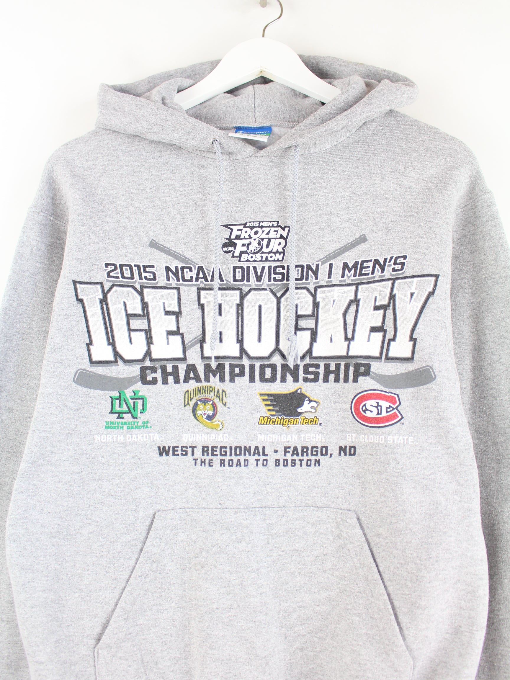 Hoodie vom Brand Champion in Größe S. Er ist aus einer Baumwollmischung gemacht und in Grau bei uns zu bekommen. Mit chiquem NCAA Print.