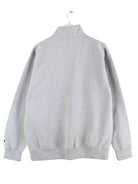 Grauer Sweater mit Stick und kurzem Reißverschluß des Labels Champion in Größe L. Er ist aus einer Baumwollmischung gefertigt und in sehr gutem Zustand im Bestand.