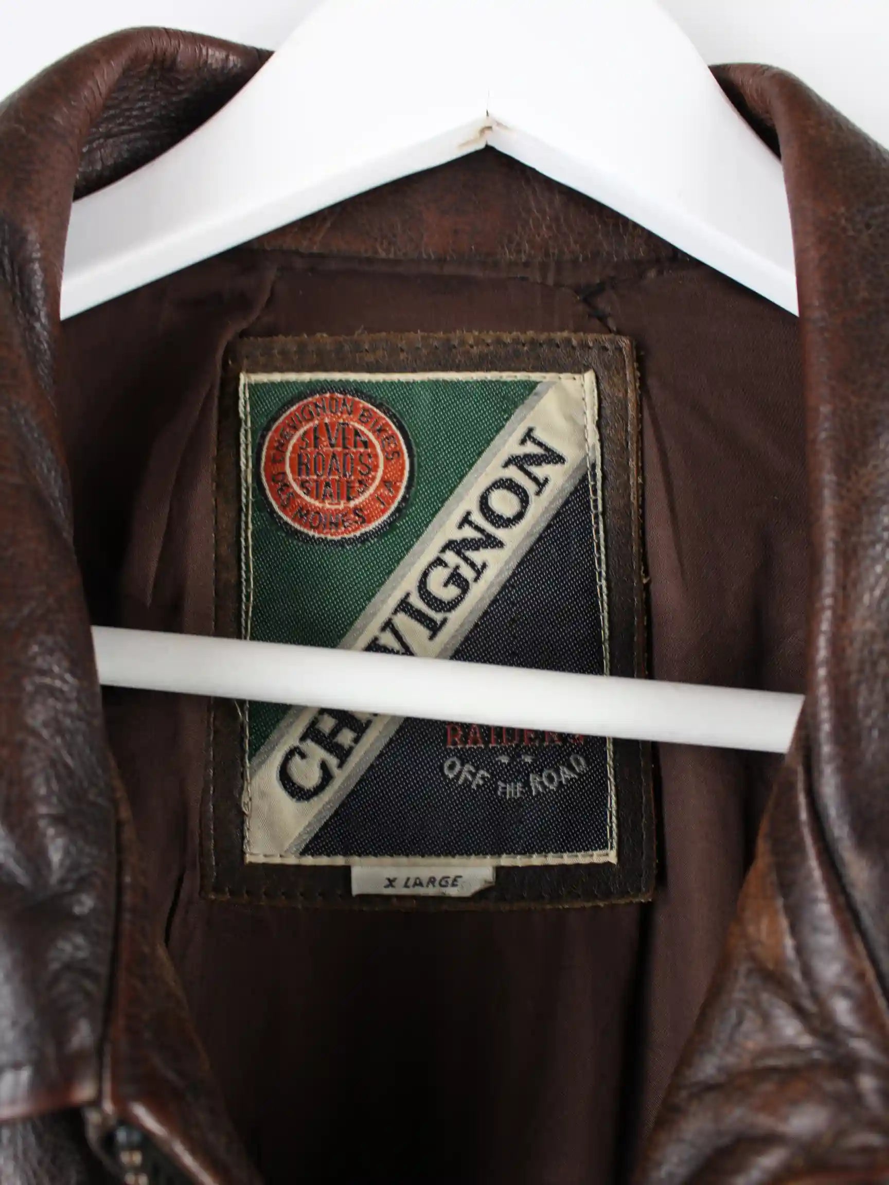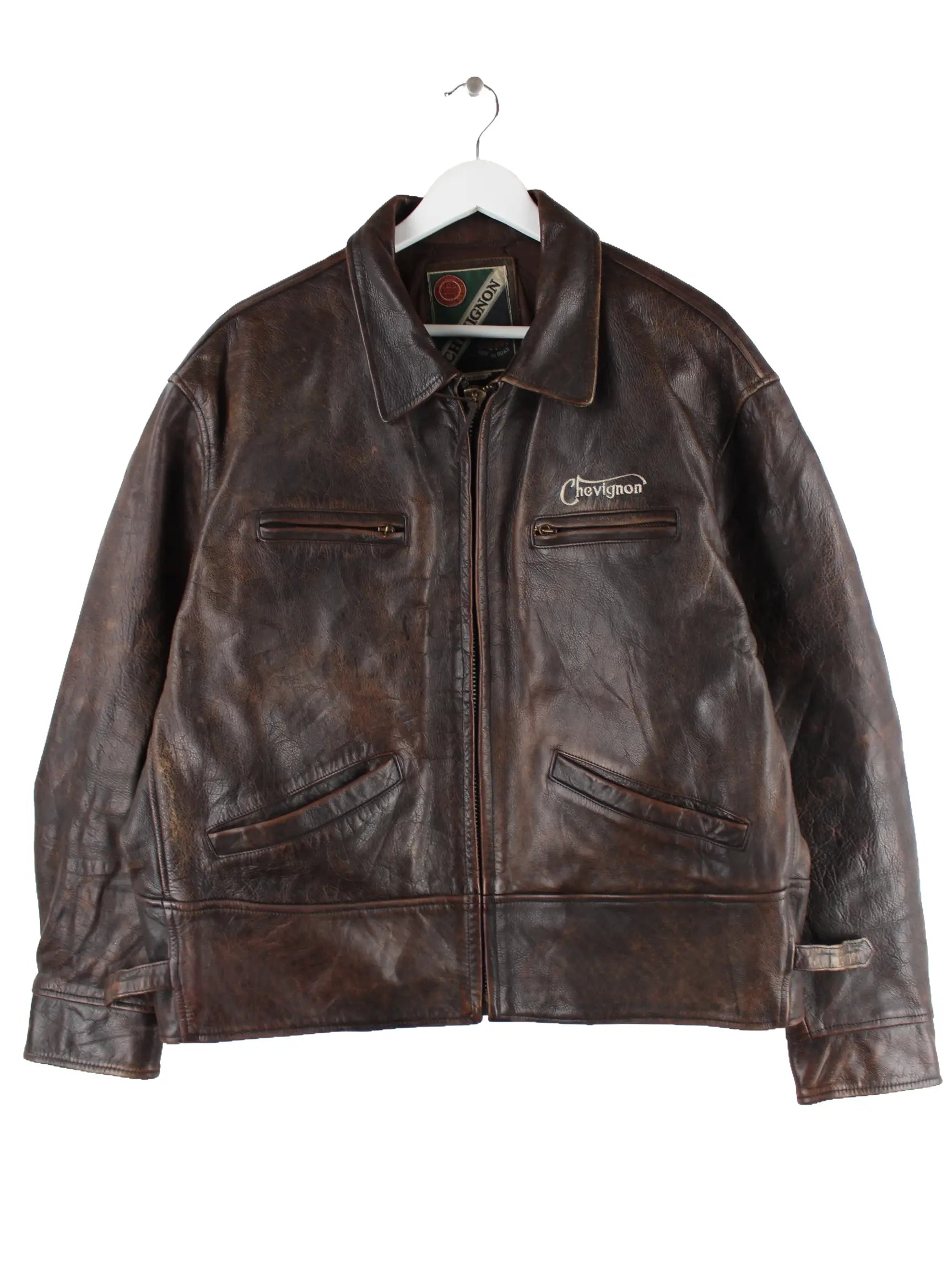 Jacke der Brand Chevignon in Größe XL aus den 90'ern. Sie ist aus Leder und in Braun vorrätig.