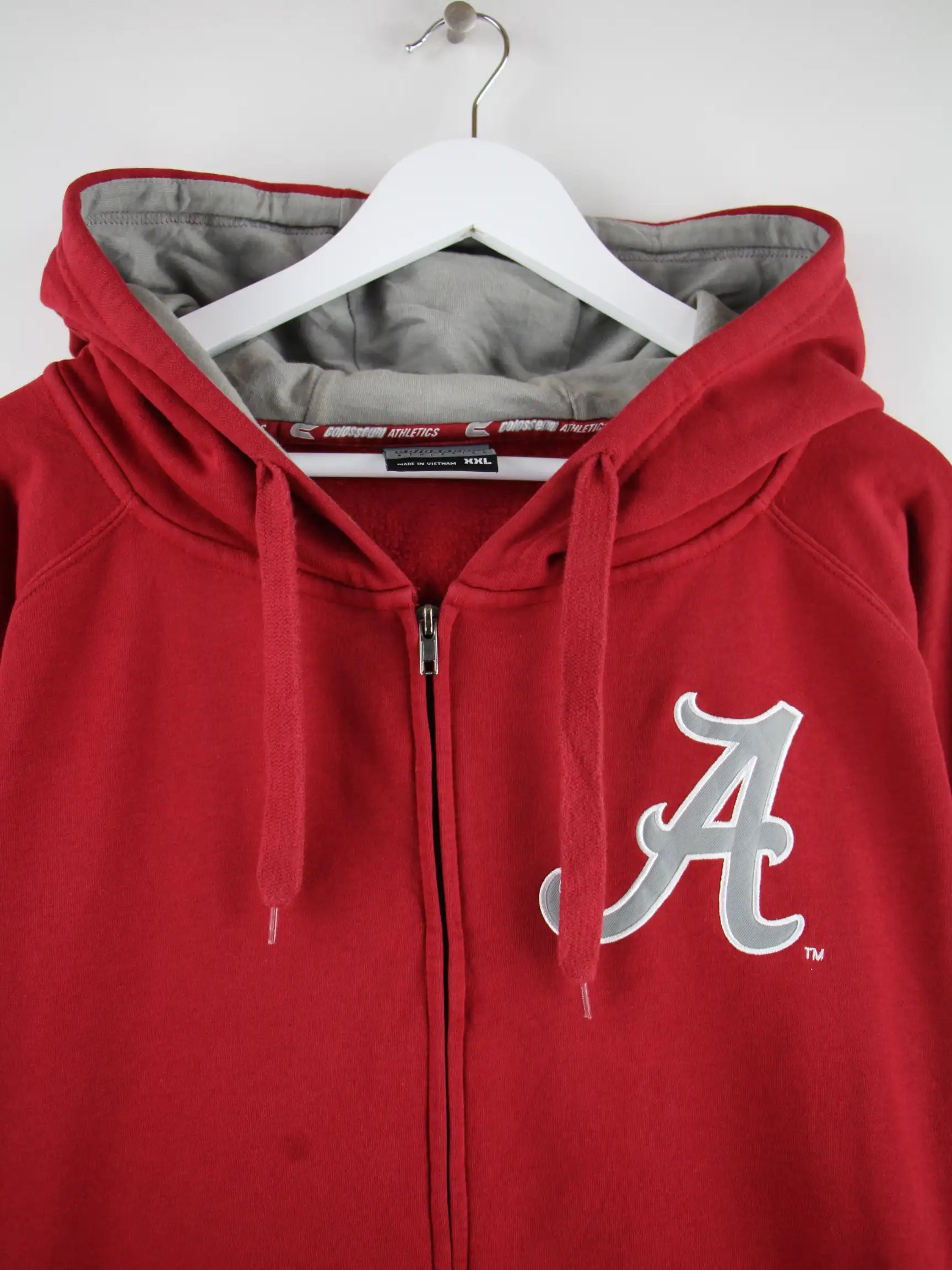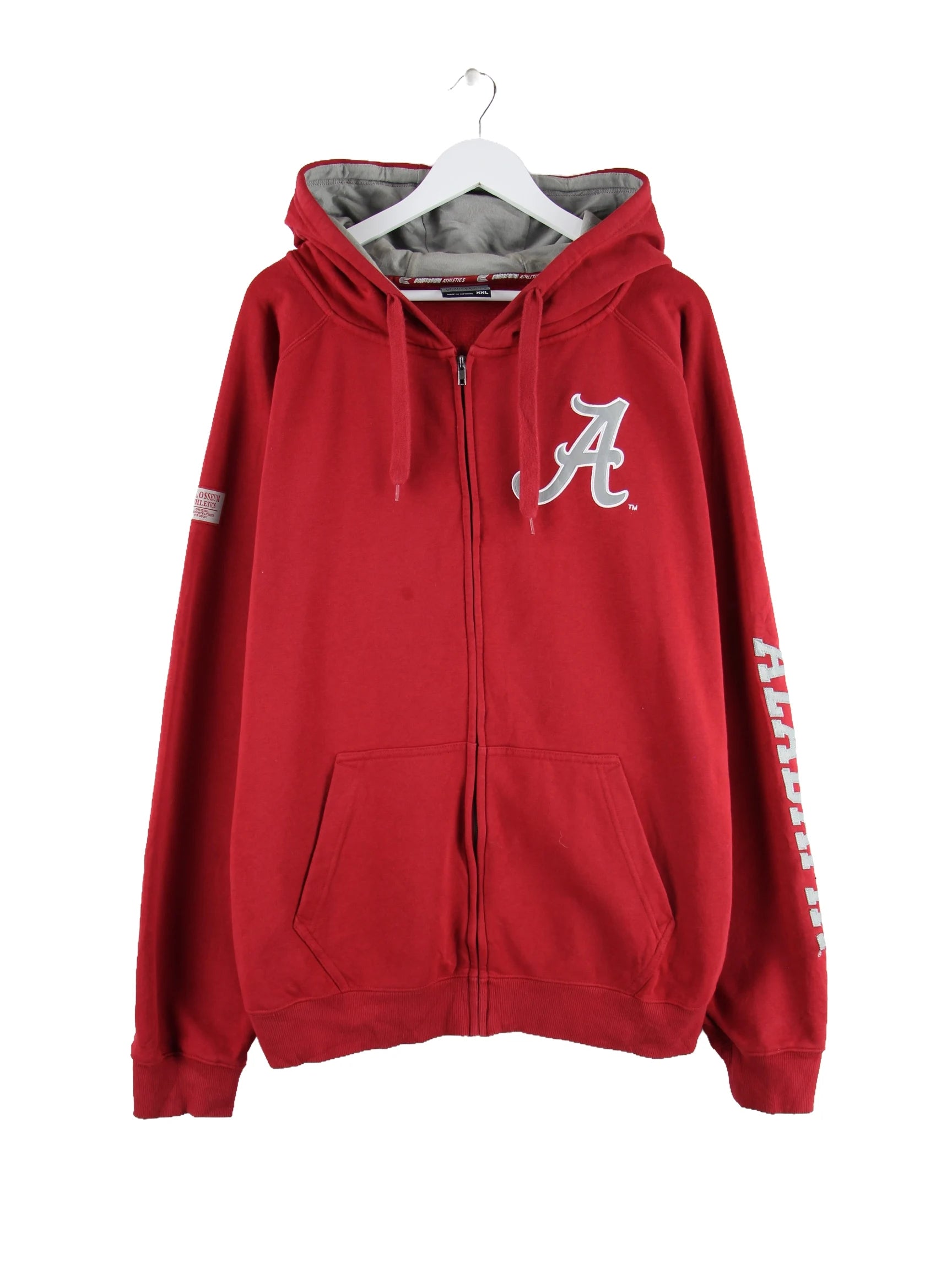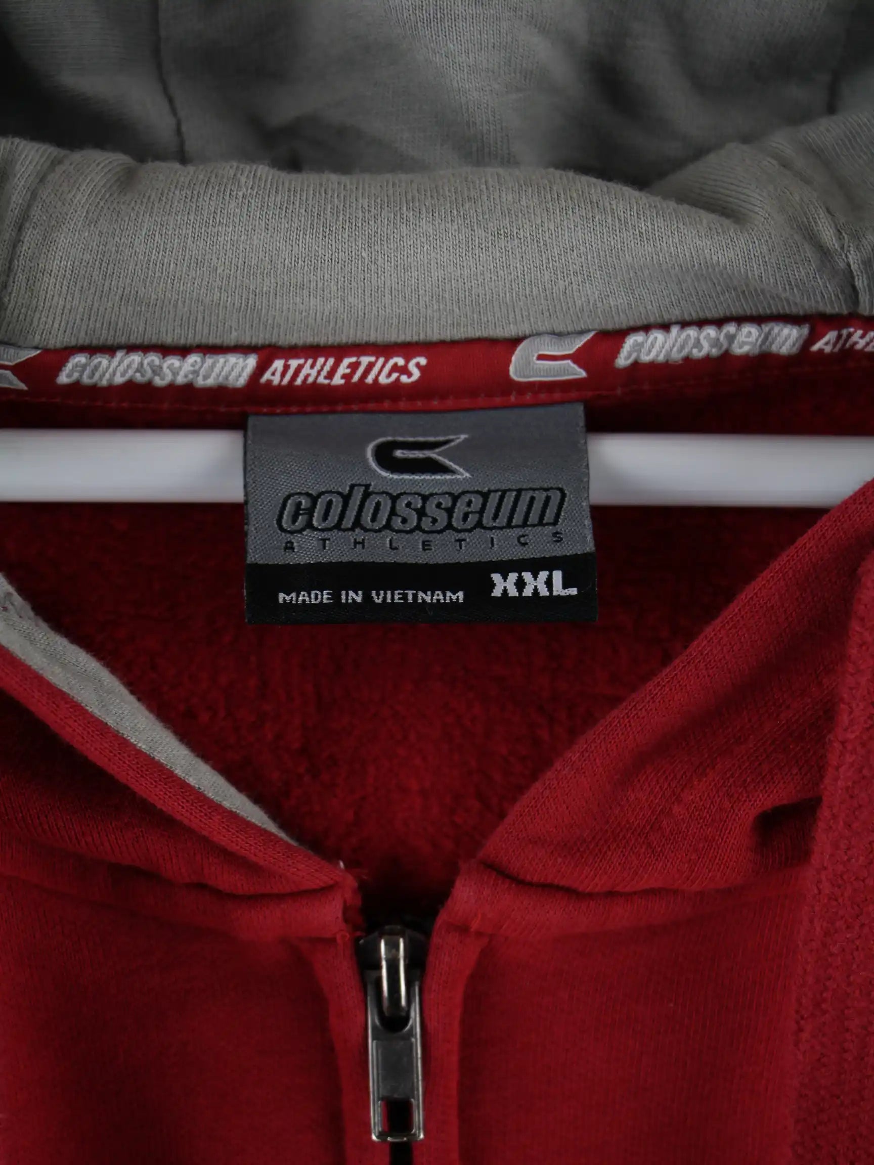 Roter Hoodie mit langem Reißverschluß der Brand Colosseum Athletics in Größe XXL. Er ist aus einer Baumwollmischung gemacht. Den Zustand würden wir als 'In Ordnung' bezeichnen (vergl. Bilder).