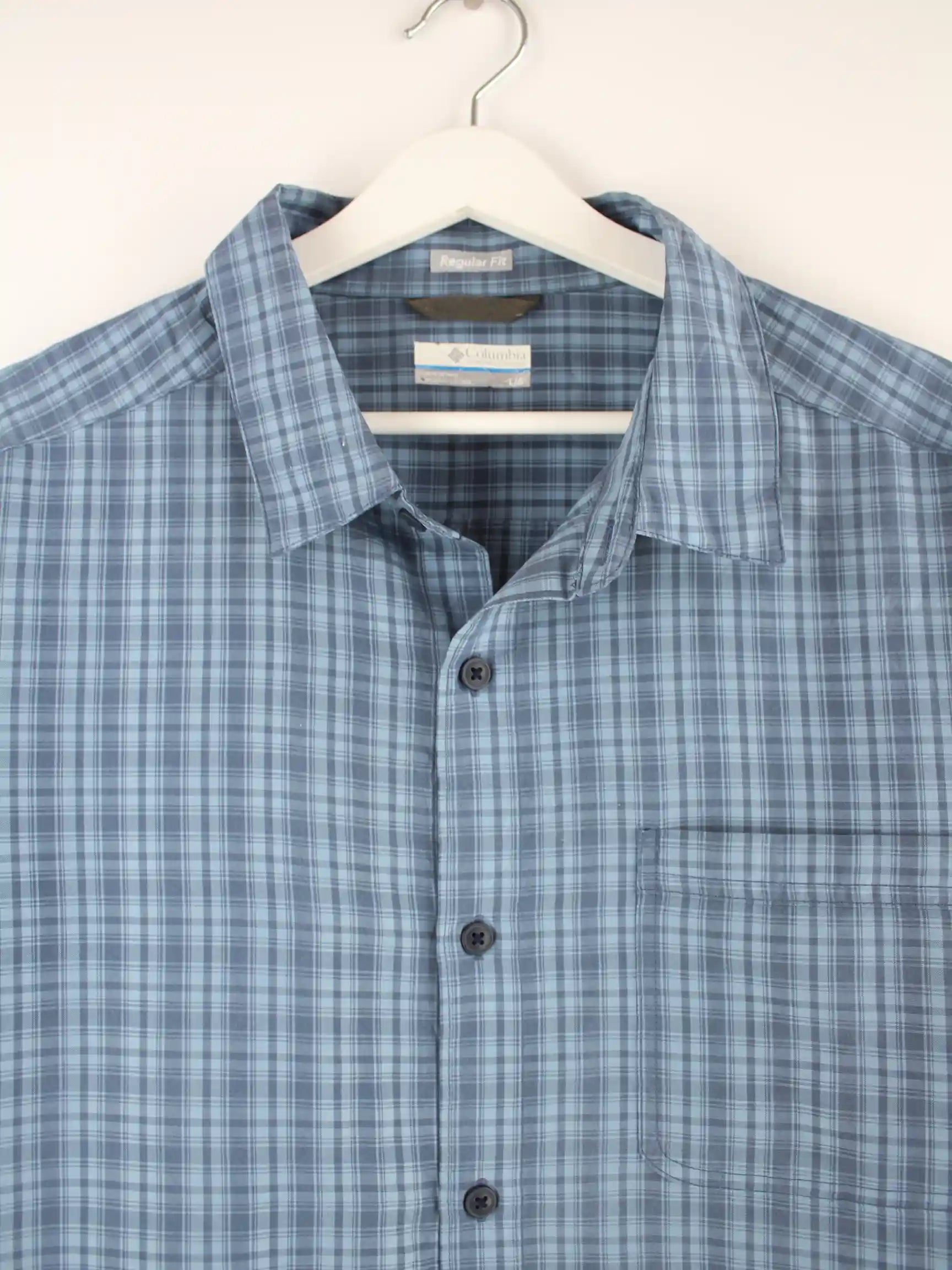 Blaues Freizeit Hemd des Labels Columbia in Größe L. Es ist aus Baumwolle angefertigt und in sehr gutem Zustand im Angebot.