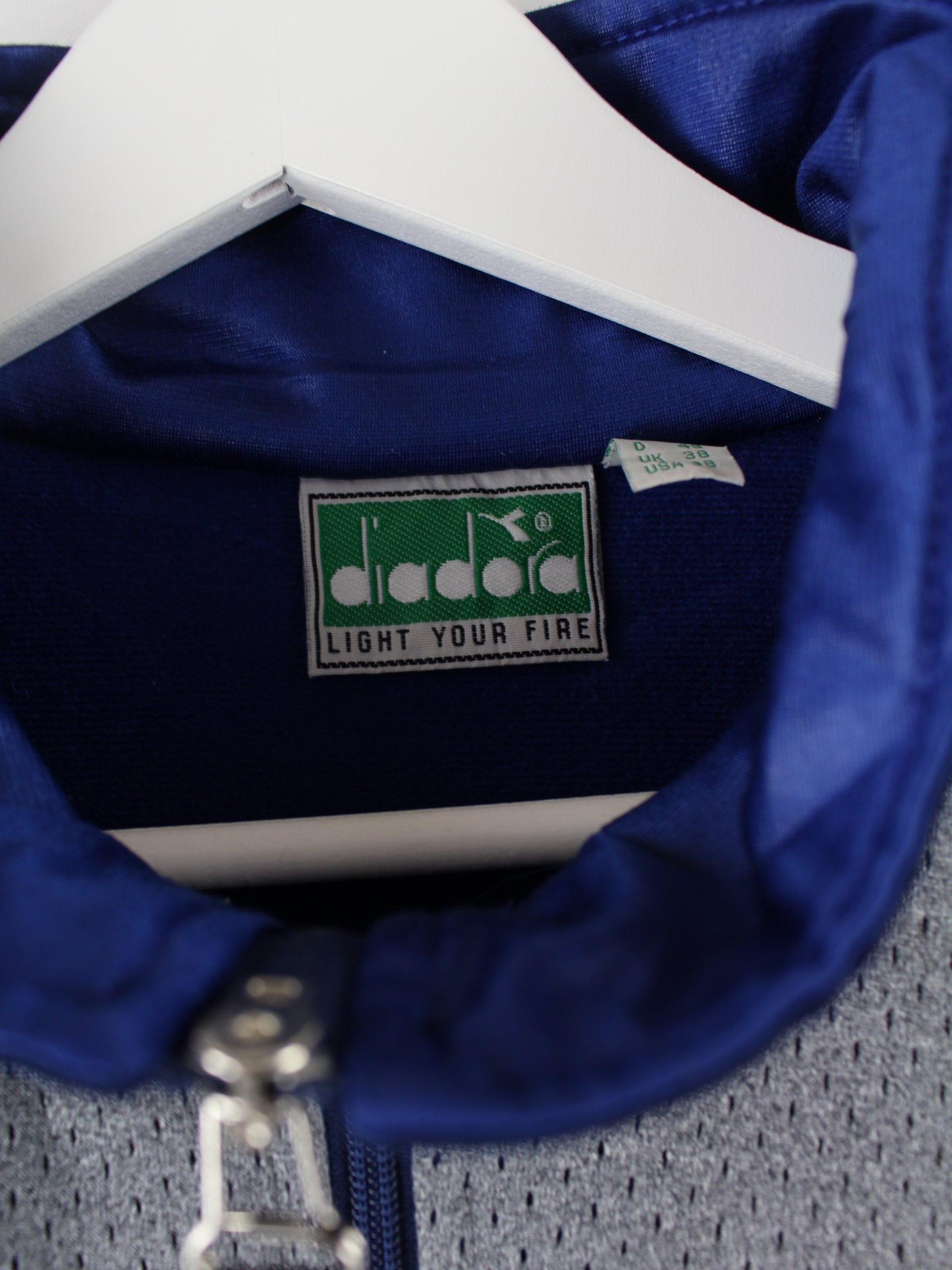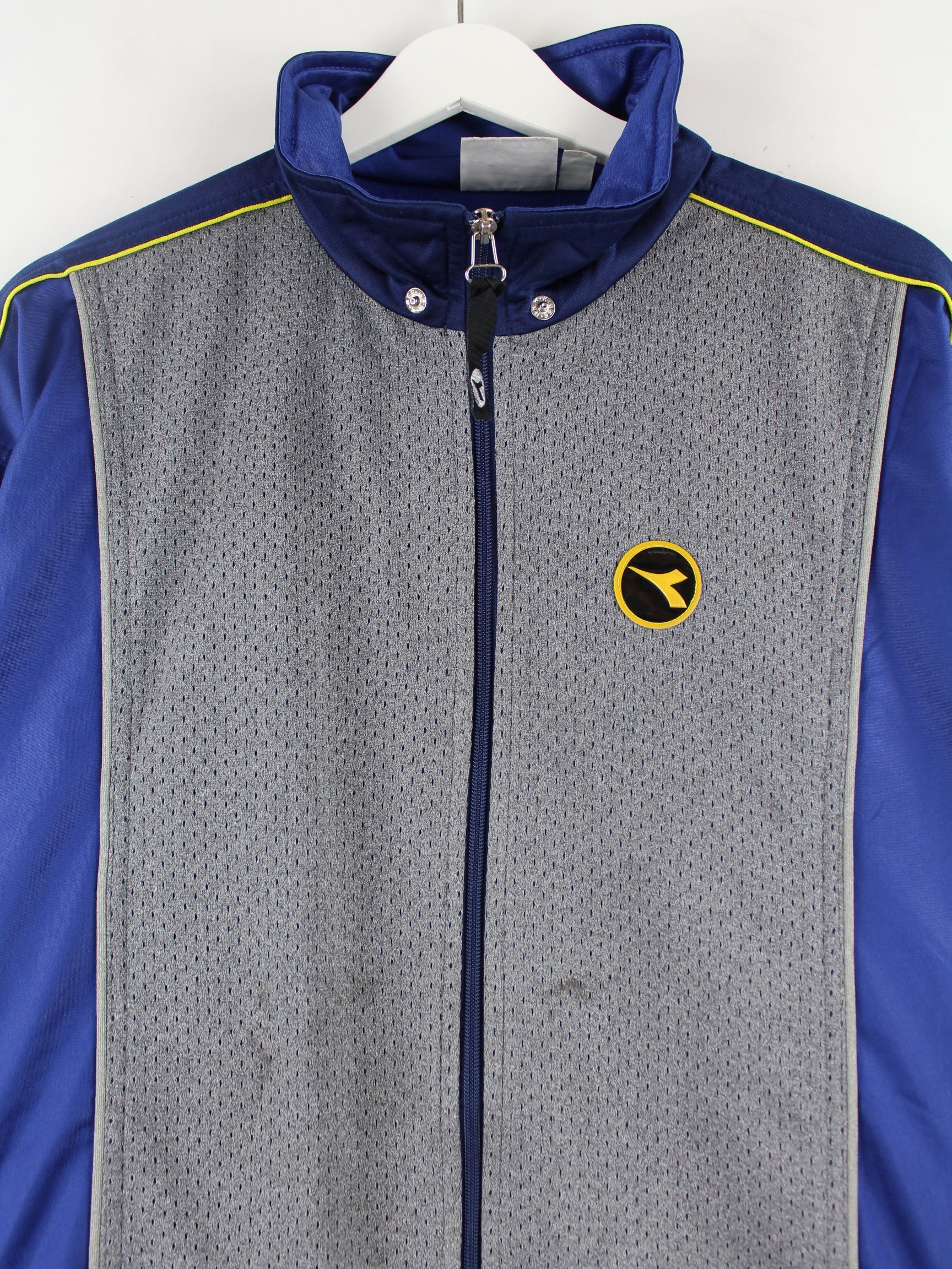 Trainingsjacke der Marke Diadora in Größe XL aus den 90'ern. Sie ist aus Synthetik angefertigt und in Grau in Stock.