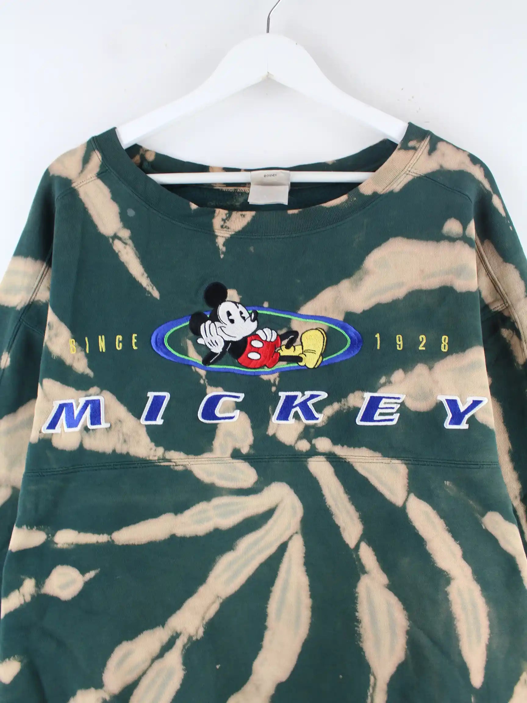 Disney Damen 90s Vintage Mickey Embroidered Rework Tie Dye Sweater Grün XL
