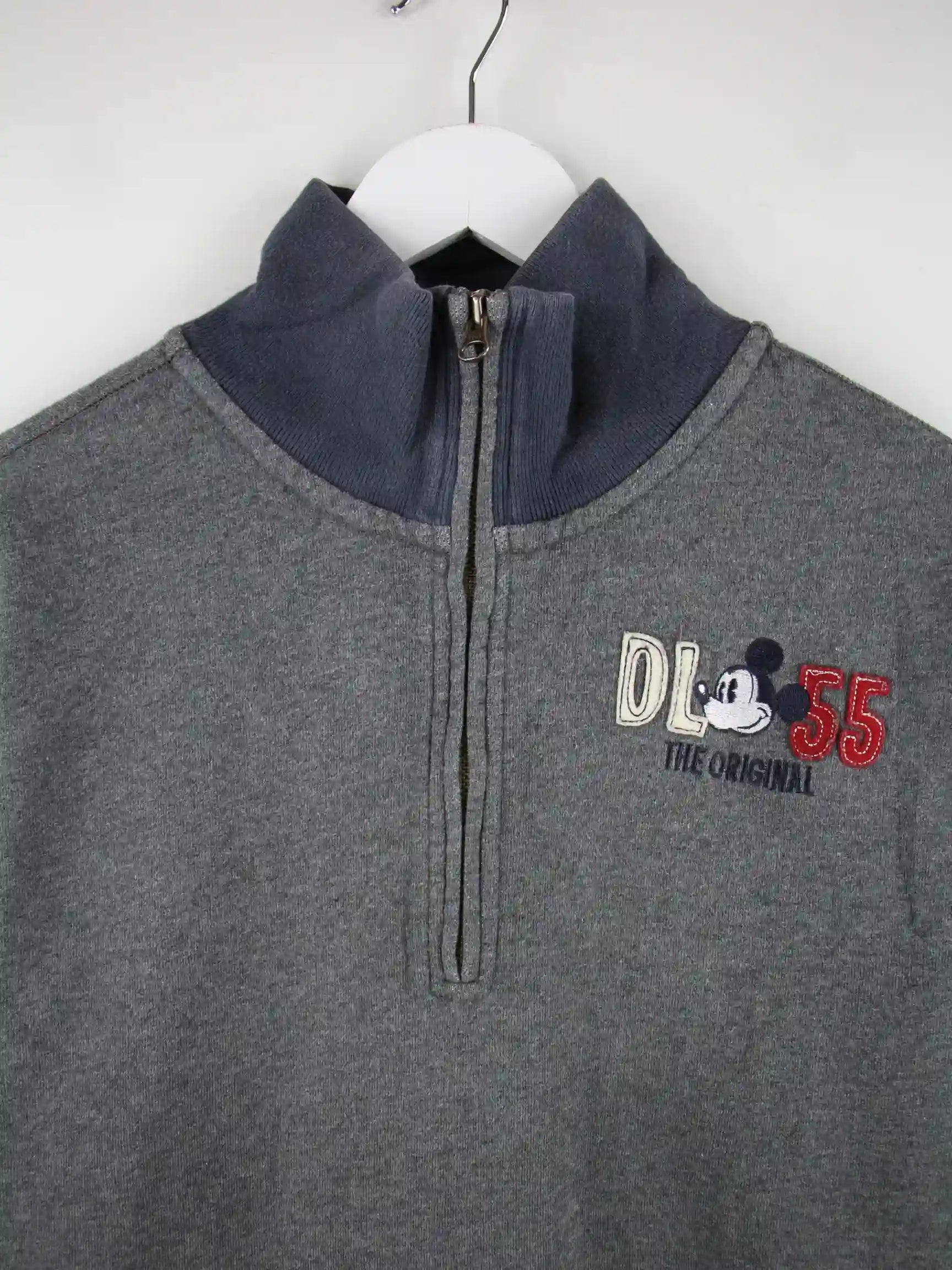 Grauer Sweater mit halbem Reißverschluß des Labels Disney in Größe L. Er ist aus einer Baumwollmischung gefertigt und in gutem Zustand zu haben.