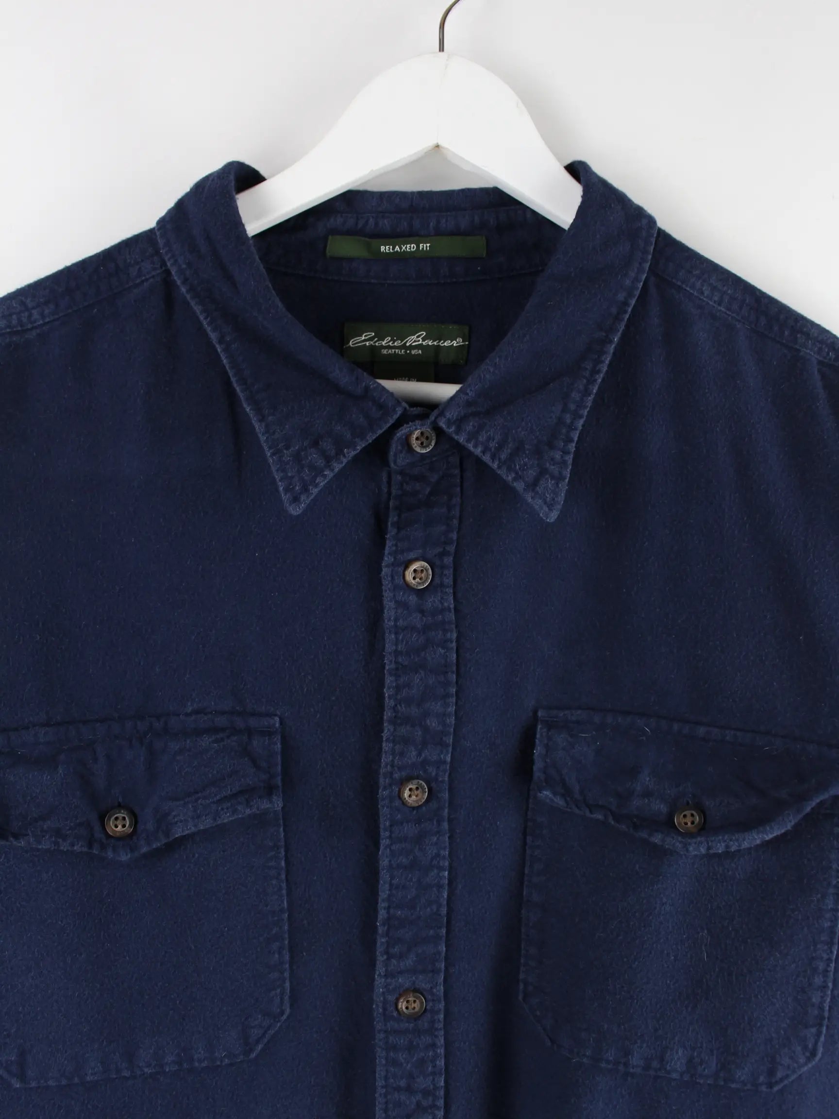 Blaues Freizeit Hemd der Marke Eddie Bauer in Größe XXL. Es ist aus Baumwolle hergestellt und in gutem Zustand vorrätig.