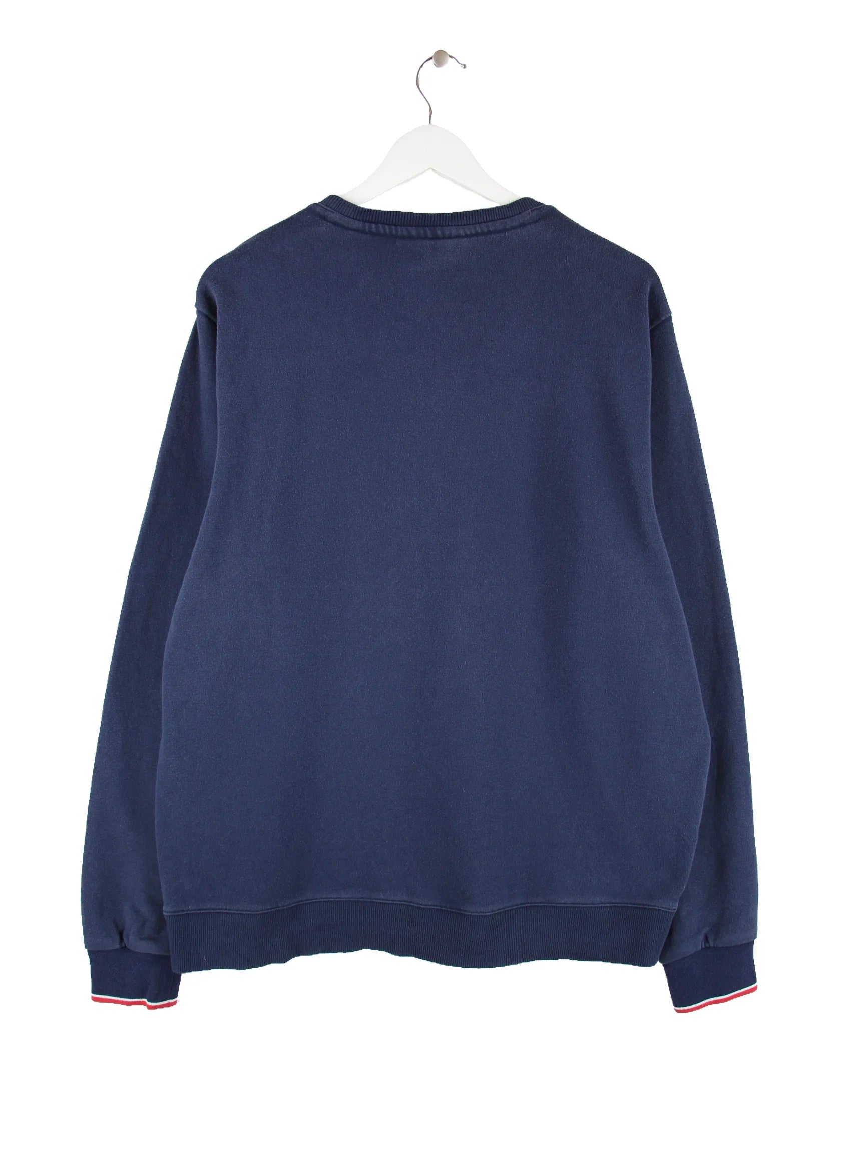 Blauer Sweater des Labels Fila in Größe L. Er ist aus einer Baumwollmischung hergestellt und in gutem Zustand bei uns zu bekommen.