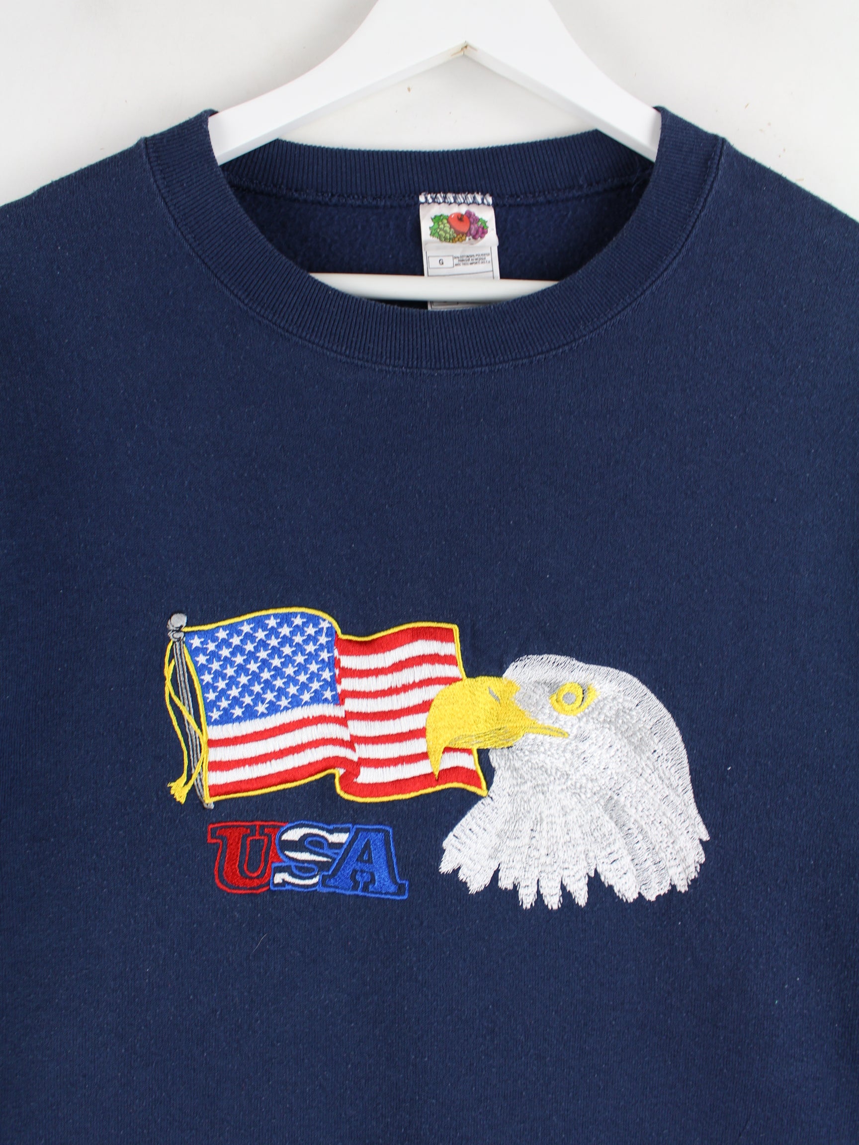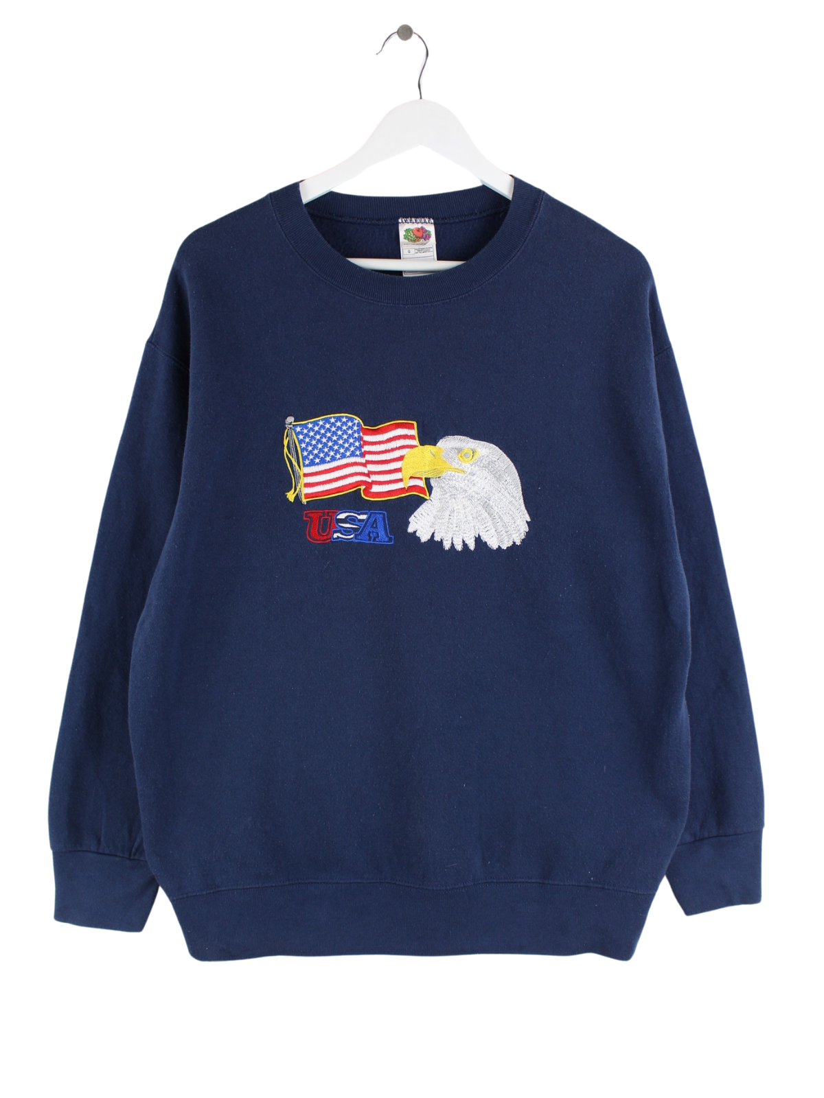 Fruit of the Loom 90s Vintage USA Embroidered Sweater Blau L