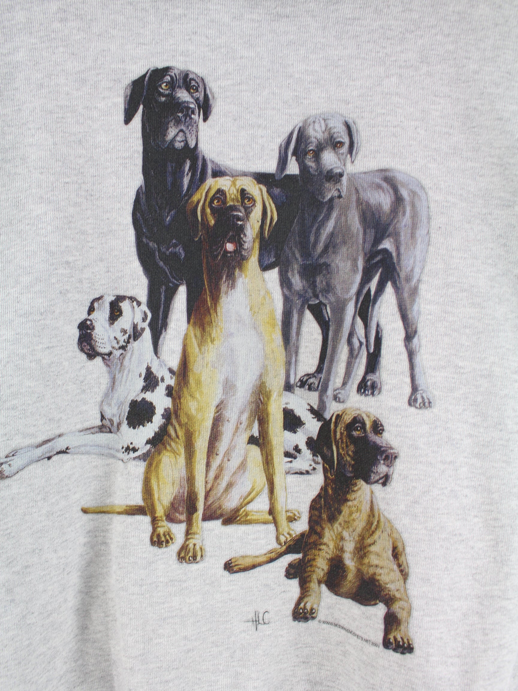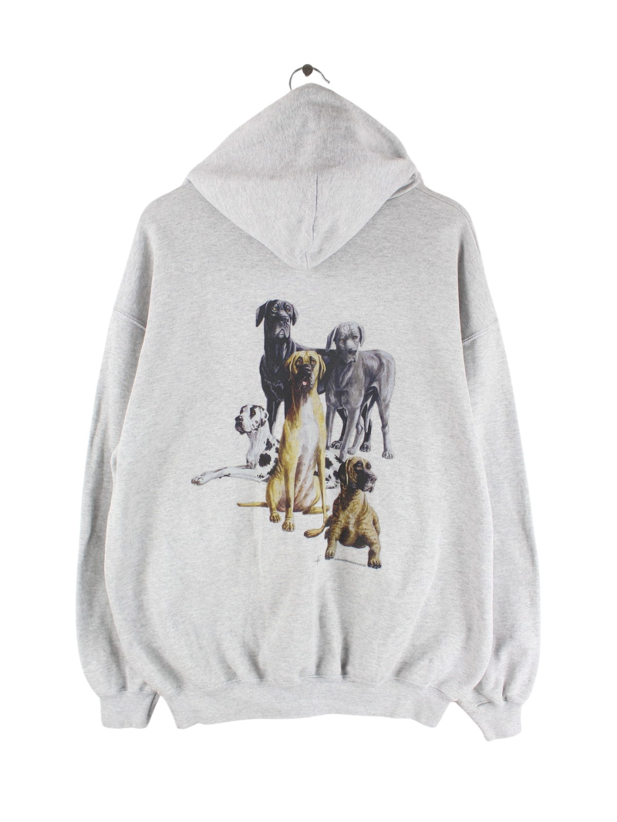 Hoodie vom Brand Fruit of the Loom in Größe XL. Er ist aus einer Baumwollmischung produziert und in Grau bei uns vorrätig. Mit tollem Dog Print.