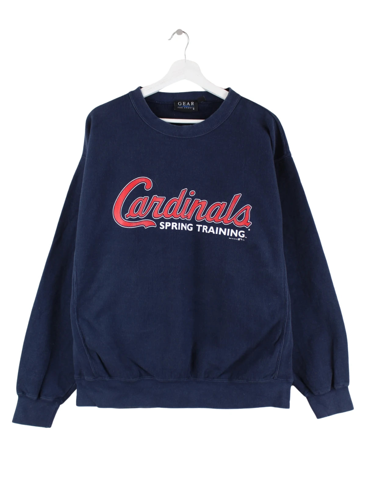 Blauer Sweater vom Label Gear for Sports aus den 90'ern in Größe L. Er ist aus einer Baumwollmischung hergestellt und in sehr gutem Zustand lieferbar. Mit tollem Cardinals Print.