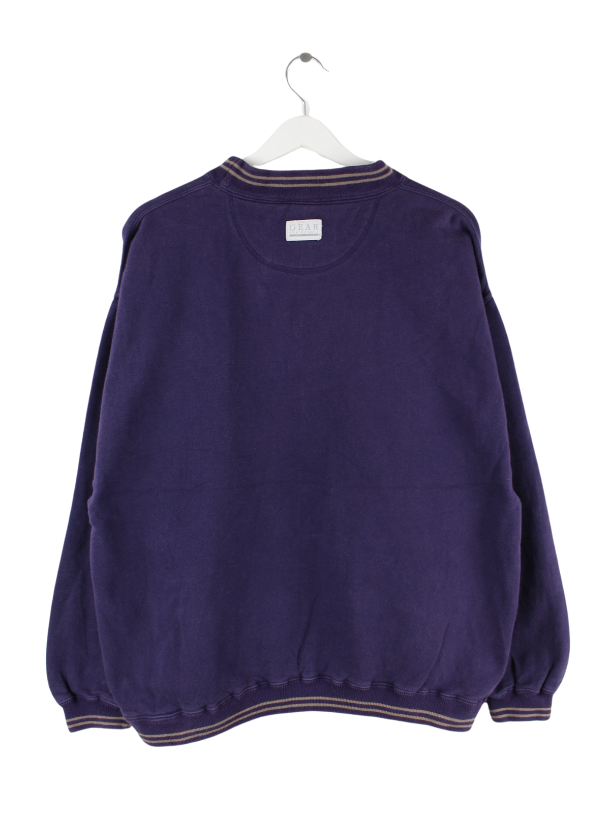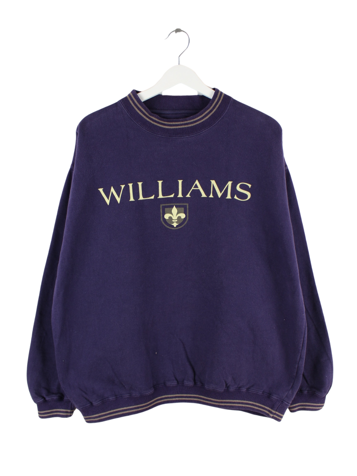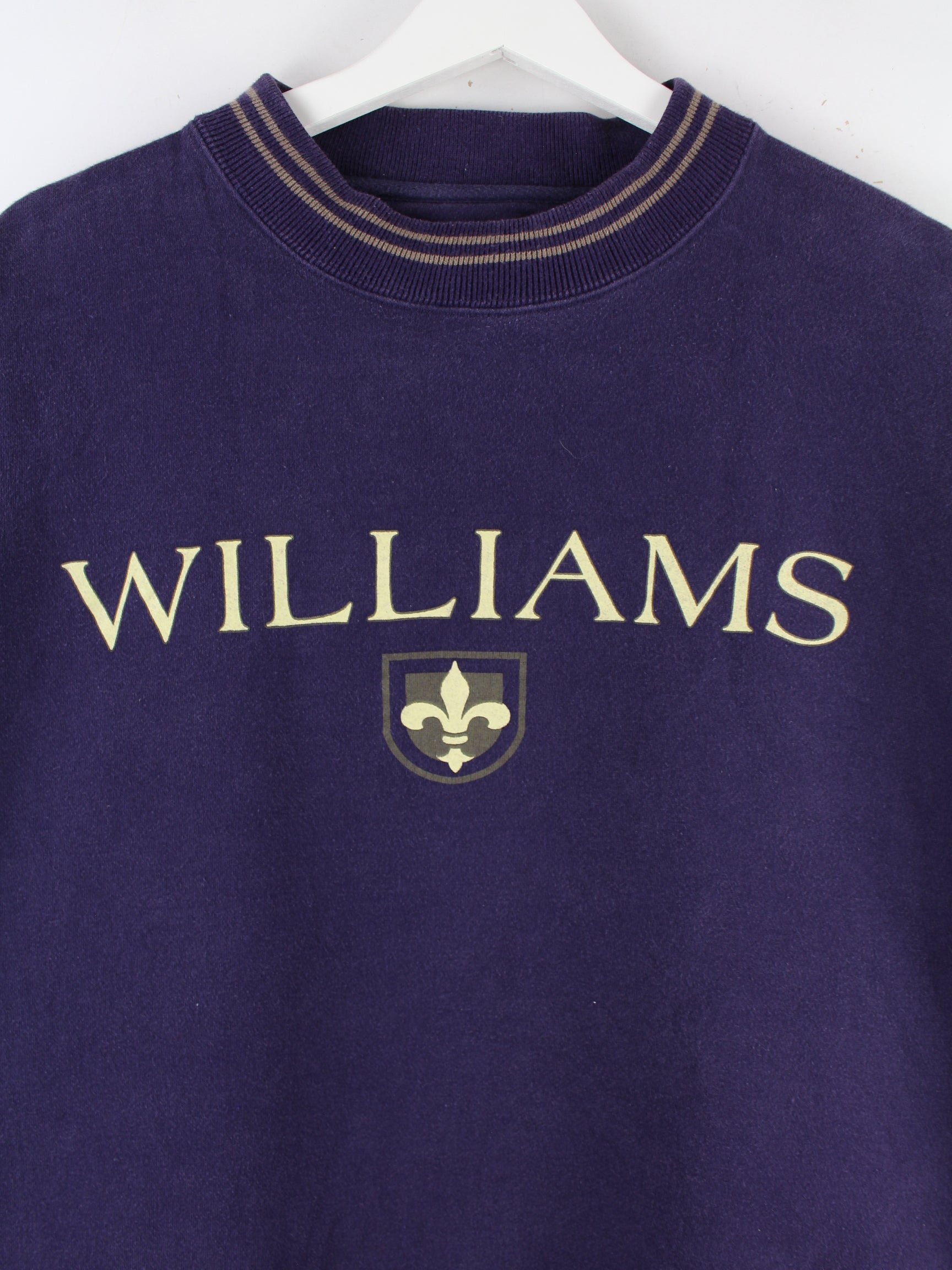 Lilafarbener Sweater der Marke Gear for Sports aus den 90'ern in Größe L. Er ist aus einer Baumwollmischung hergestellt und in gutem Zustand im Bestand. Mit schickem Williams Print.