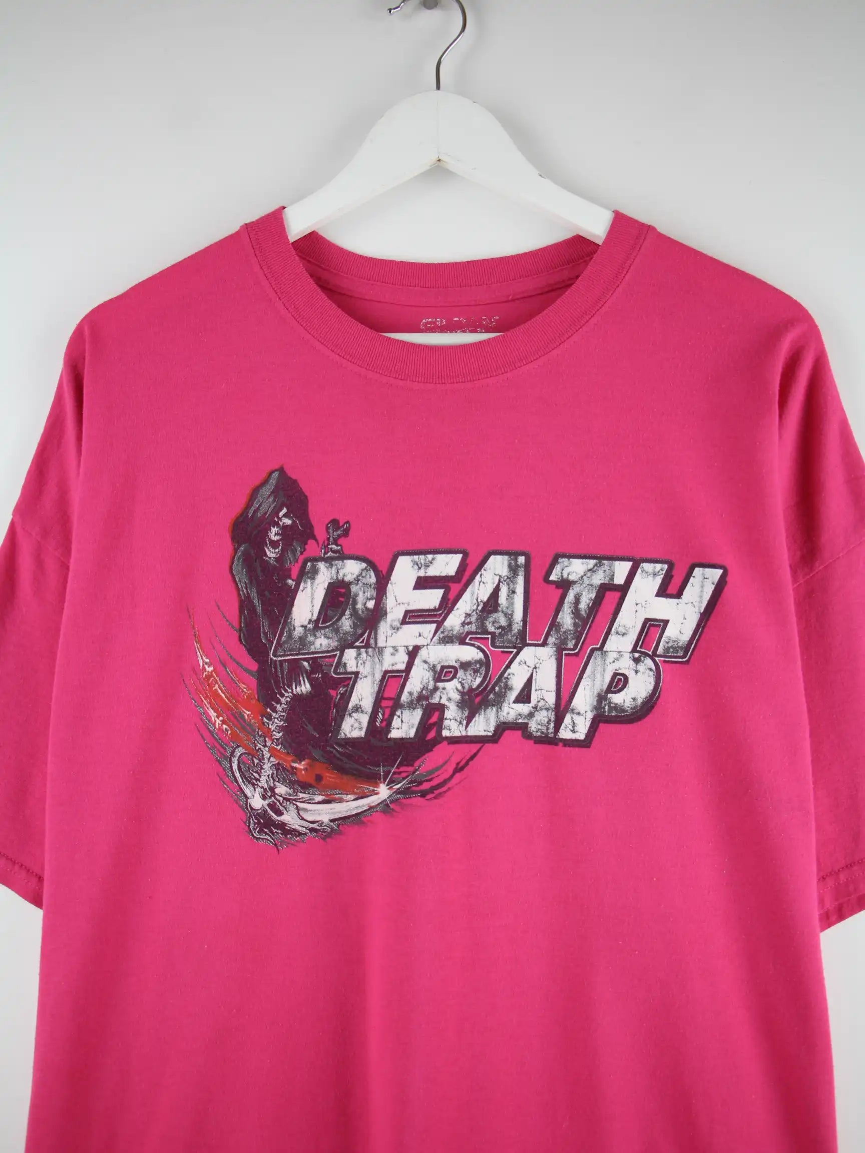Gildan Death Trap Racing Print T-Shirt Pink XXL
