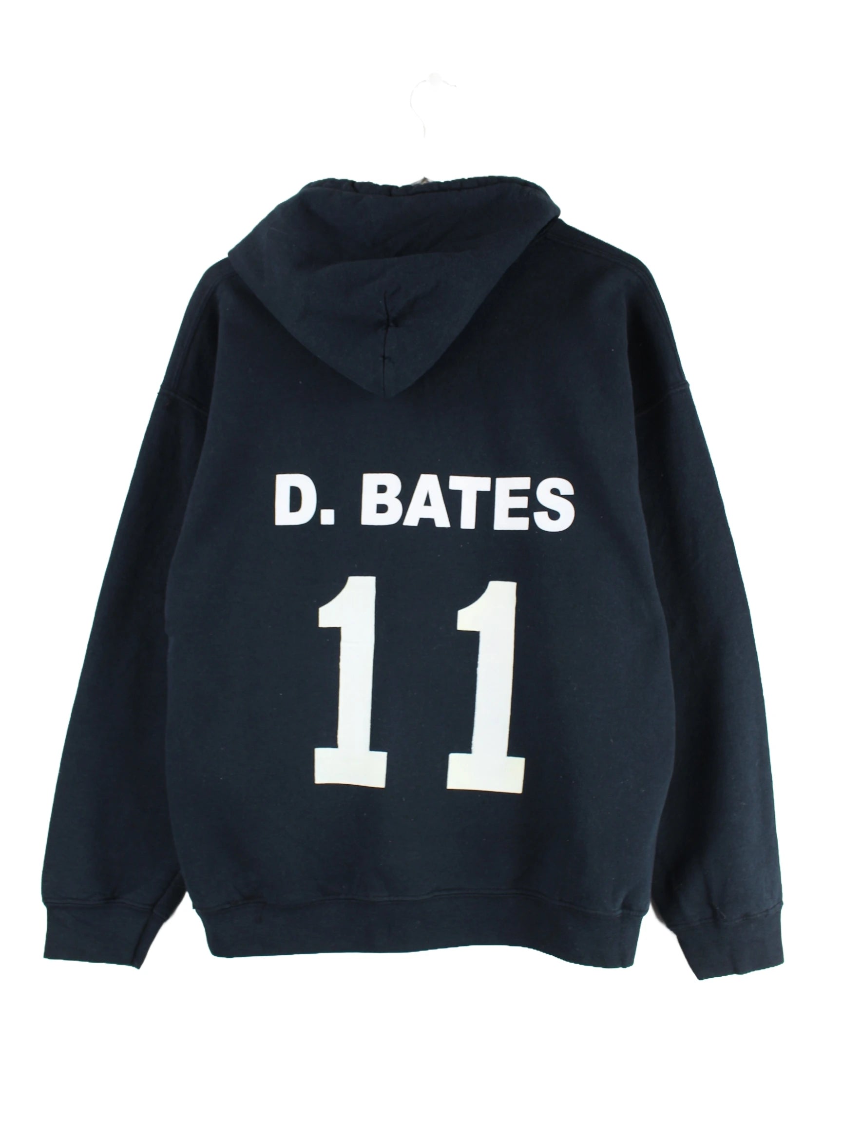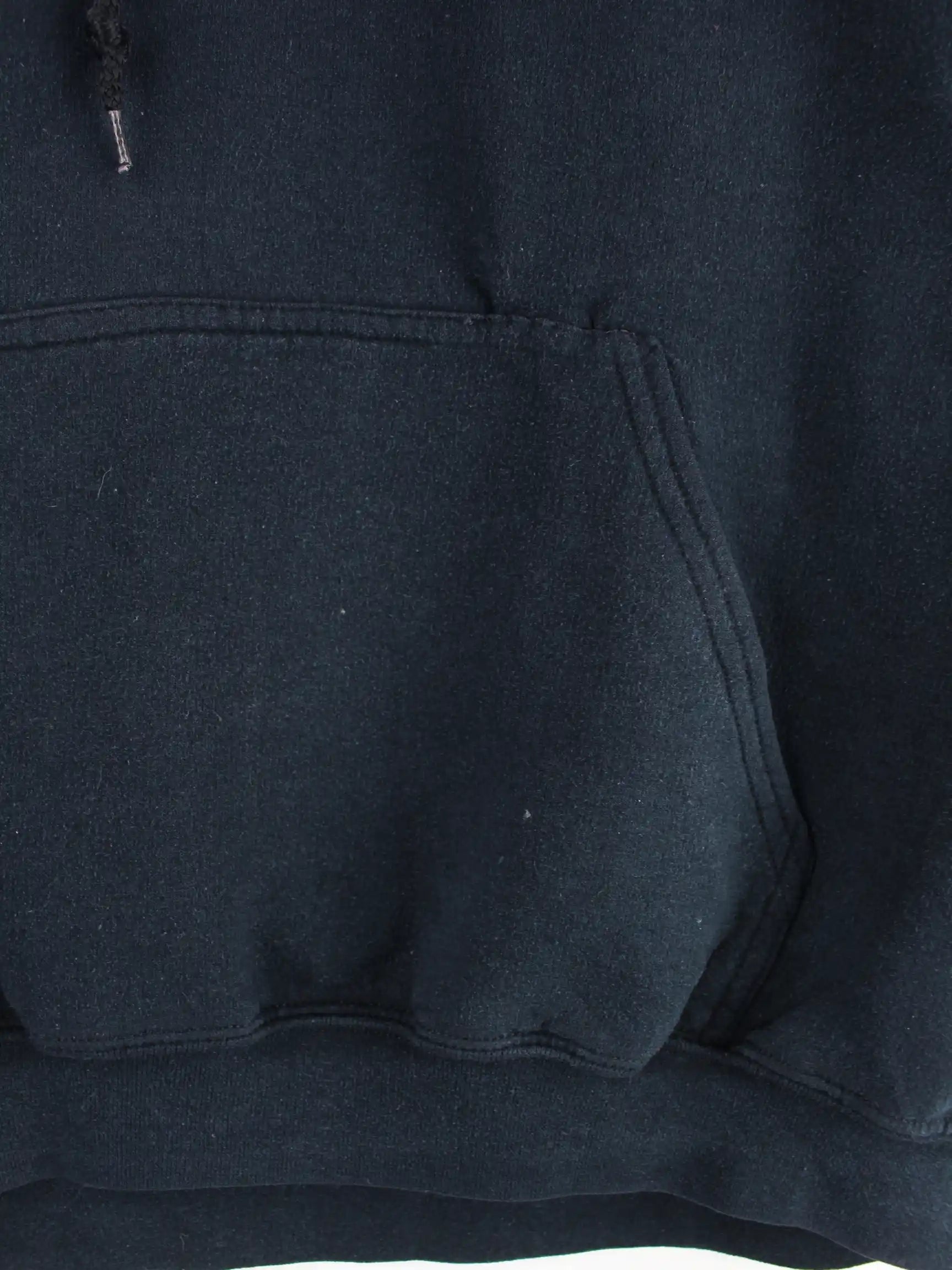 Schwarzer Hoodie der Brand Gildan in Größe L. Er ist aus einer Baumwollmischung und in gutem Zustand auf Lager. Mit chiquem Style Print.