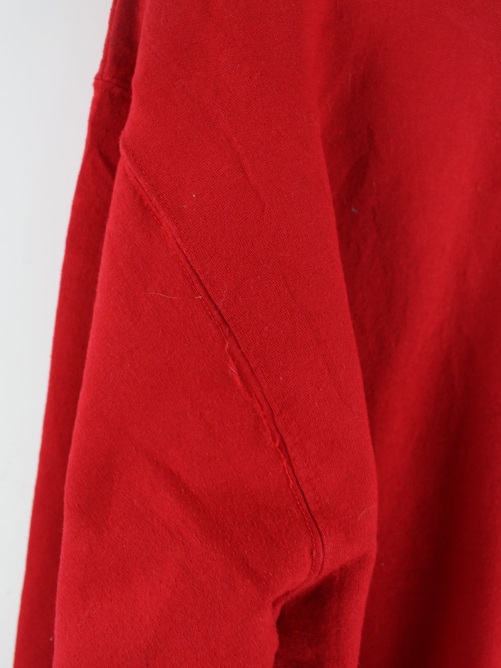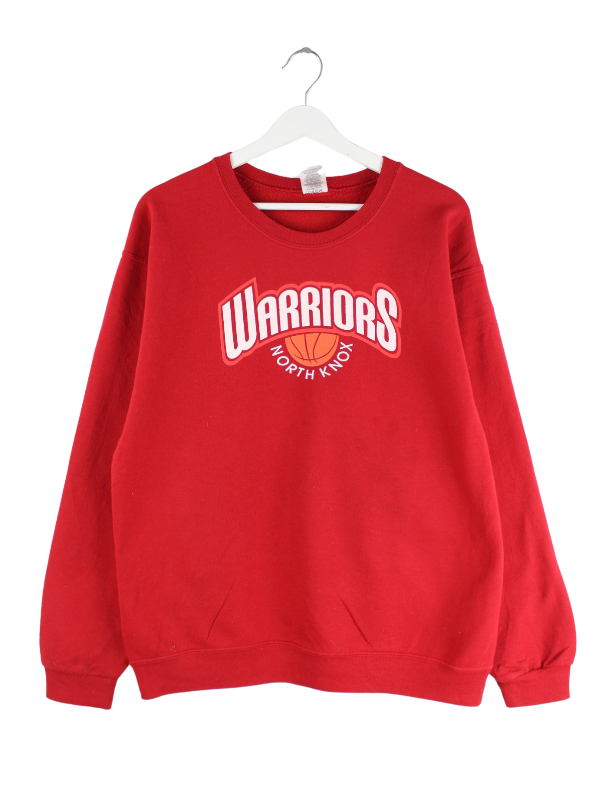Roter Sweater vom Label Jerzees aus den 90'ern in Größe L. Er ist aus einer Baumwollmischung angefertigt. Den Zustand würden wir als 'In Ordnung' bezeichnen (vergl. Bilder).Mit chiquem Warriors Print.
