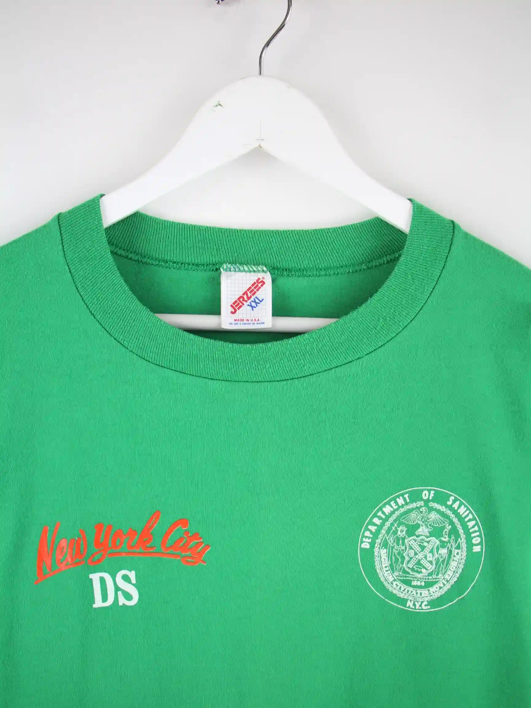 Jerzees 90s Vintage Sanitation Department NYC Print Single Stitch T-Shirt Grün XXL