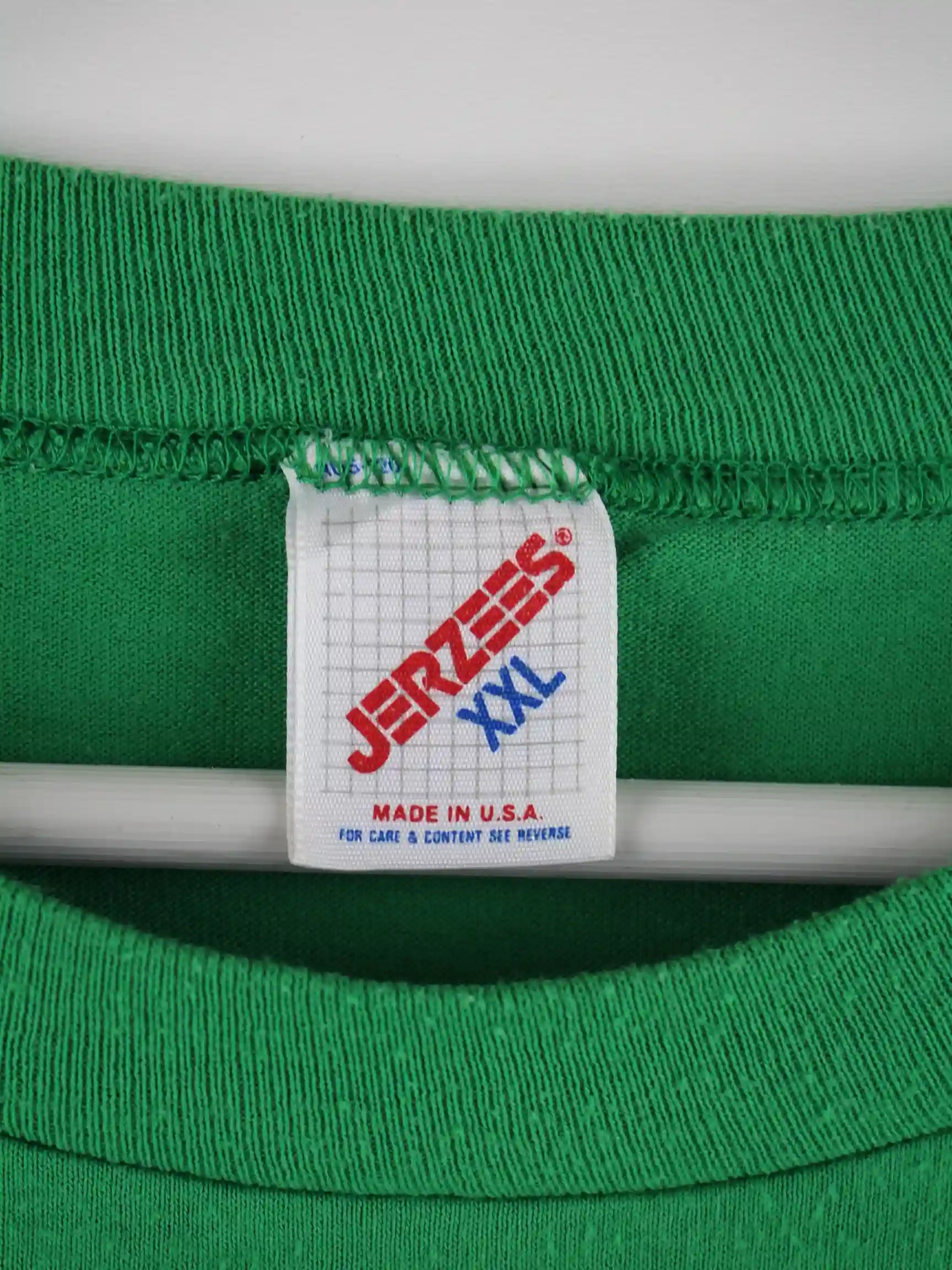 T-Shirt aus dem Hause Jerzees in Größe XXL aus den 90'ern. Es ist aus Baumwolle und in Grün im Bestand. Mit schönem NYC Print.