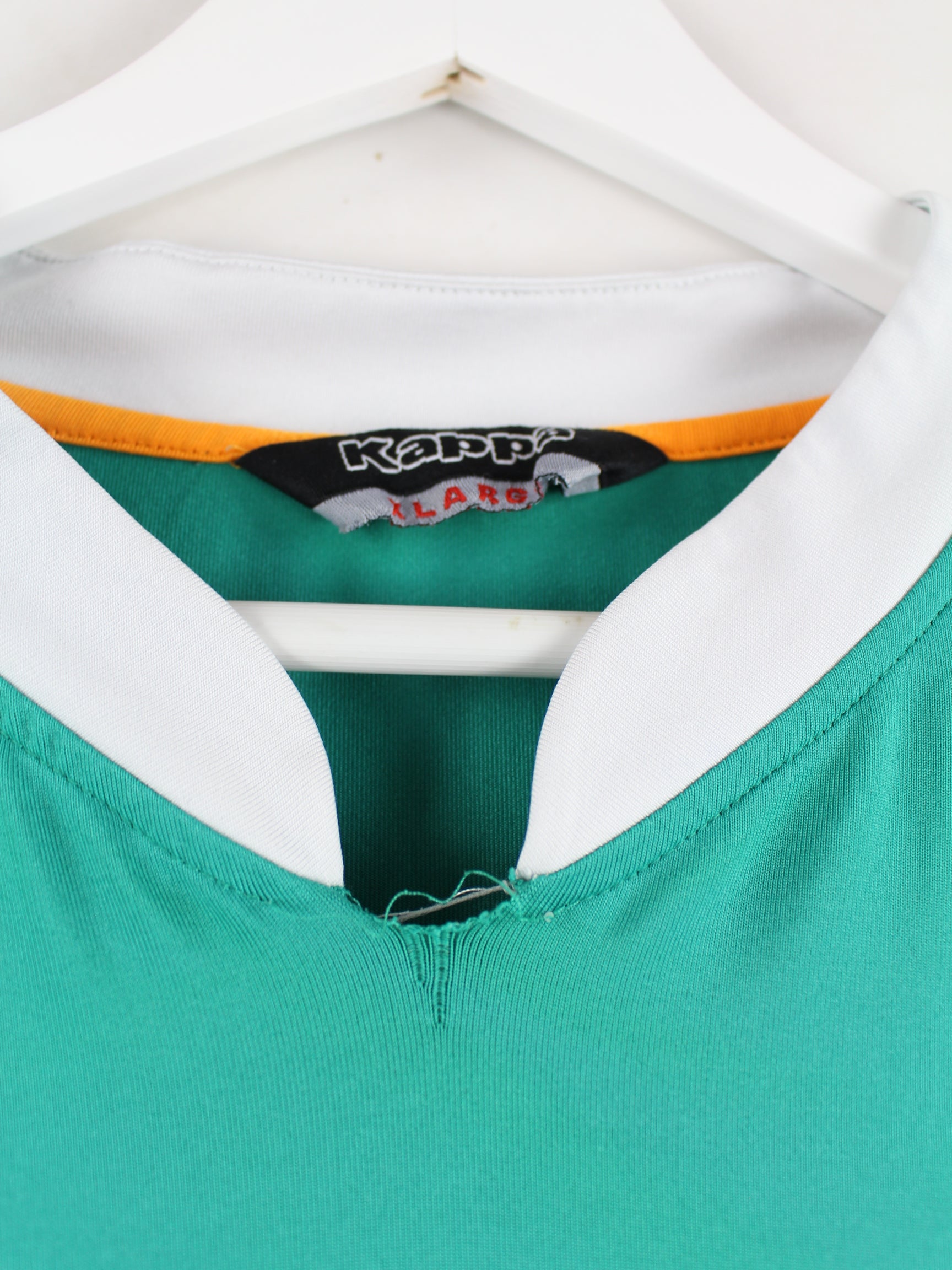Trikot der Marke Kappa in Größe L. Es ist aus Synthetik hergestellt und in Grün bei uns vorrätig.