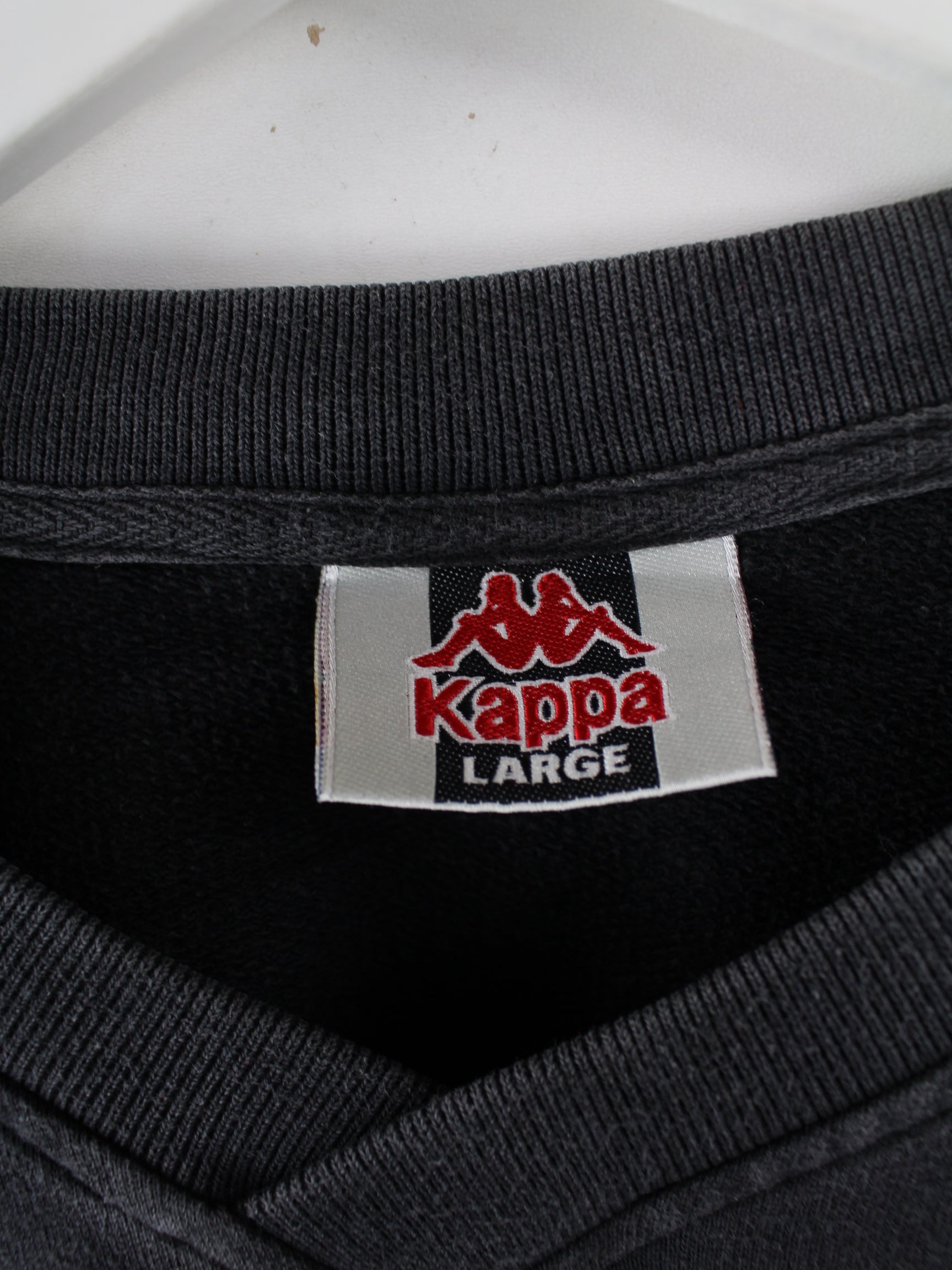 Schwarzer Sweater vom Label Kappa aus den 90'ern in Größe L. Er ist aus einer Baumwollmischung und in gutem Zustand auf Lager.