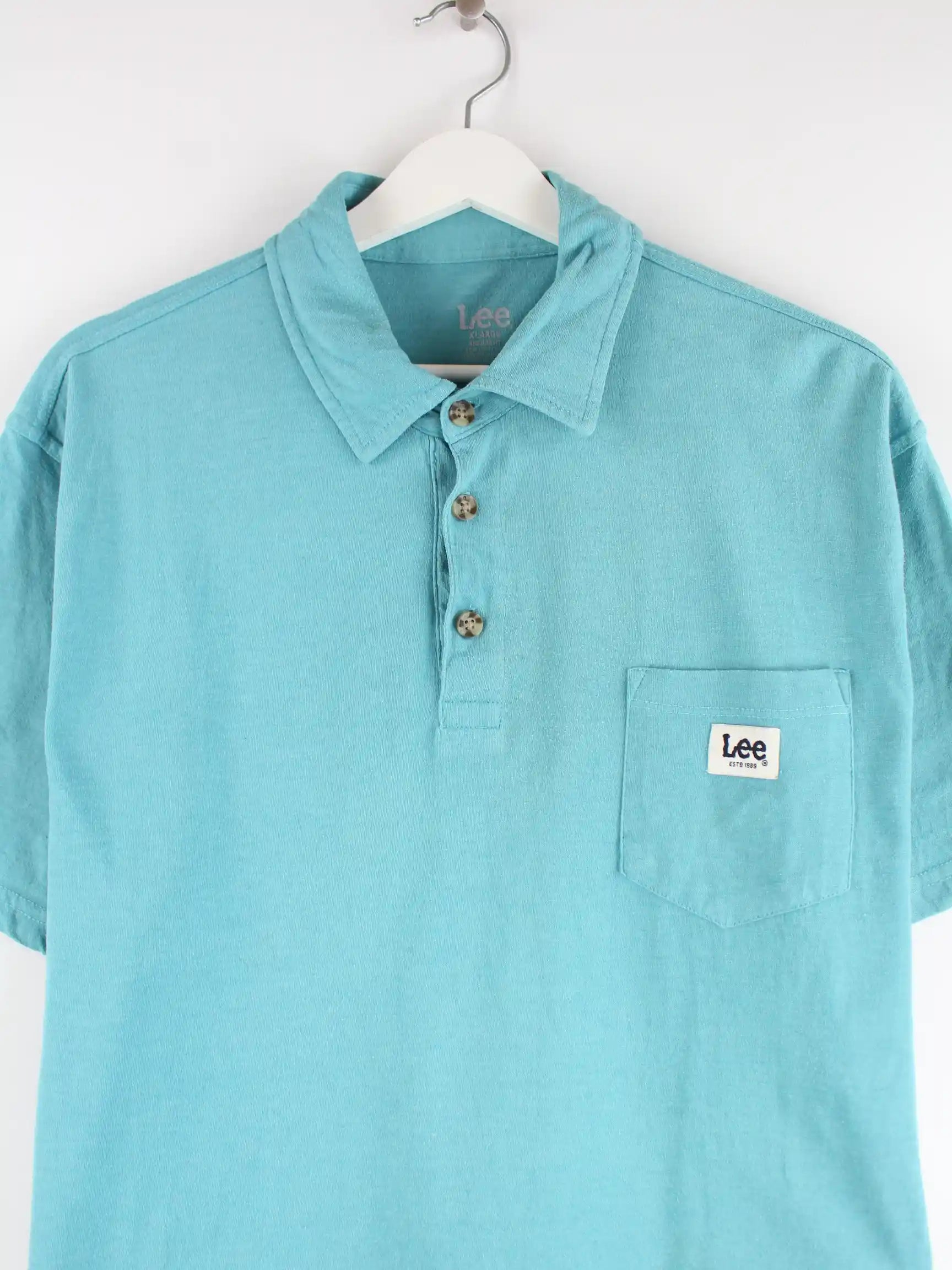 Poloshirt vom Label Lee in Größe XL. Es ist aus einer Baumwollmischung angefertigt und in Blau vorrätig.