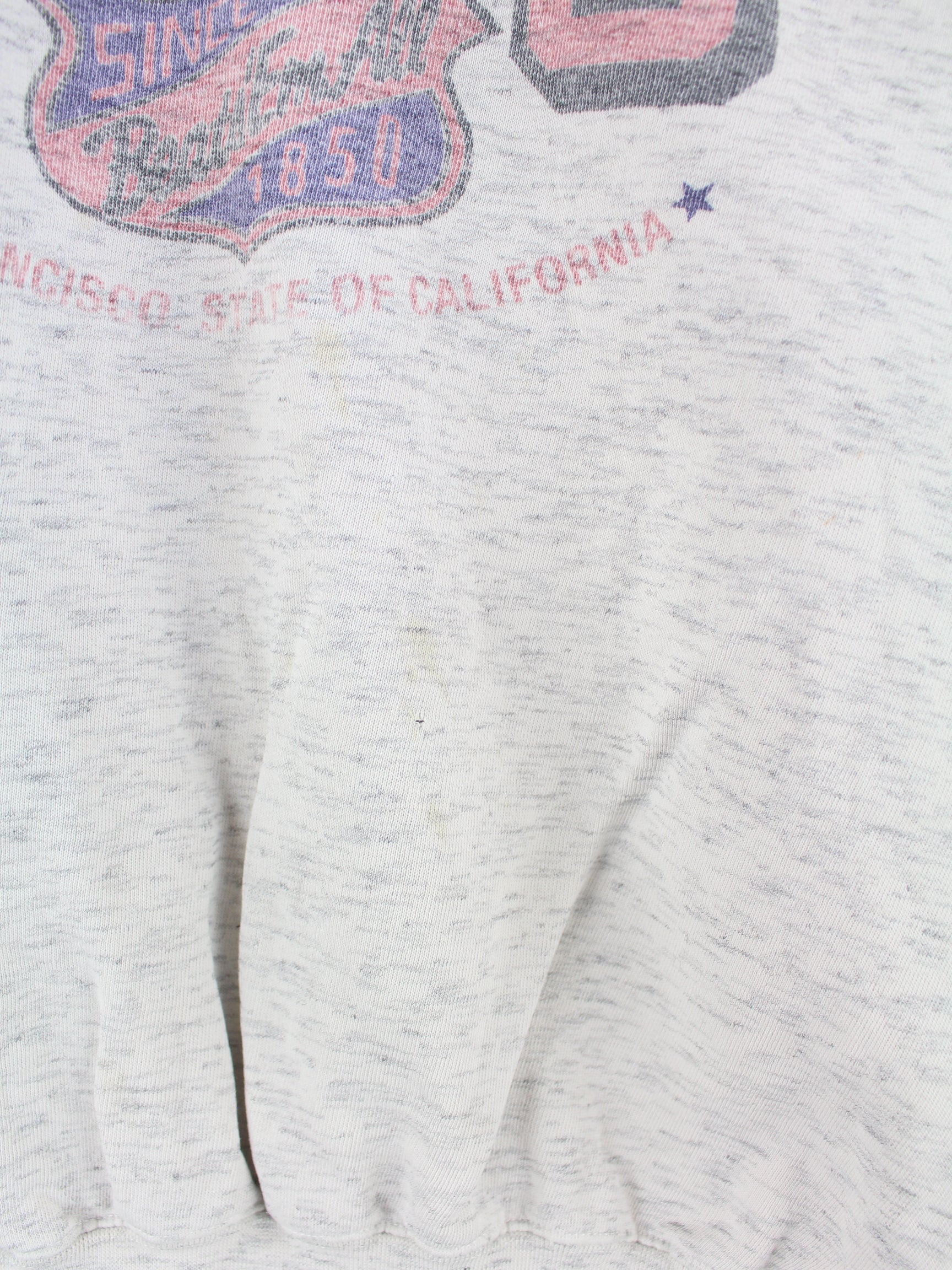 Grauer Sweater von Levi's aus den 80'ern in Größe M. Er ist aus einer Baumwollmischung hergestellt. Den Zustand würden wir als 'In Ordnung' bezeichnen (vergl. Bilder).Mit schönem Vintage Print.